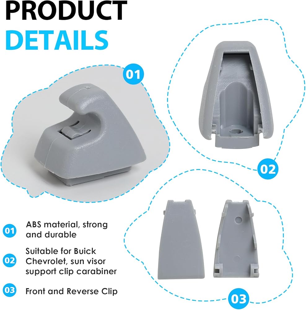 • 【Perfect Compatibility】These sun visor clips are compatible with Chevy Silverado 1500 (2007-2013), Cruze (2011-2016), Sonic (2012-2020), Spark (2013-2016), Tahoe (2007-2013), compatible with GMC Sierra 1500 (2007-2013), Yukon (2007-2013), Buick Verano (2012-2017).