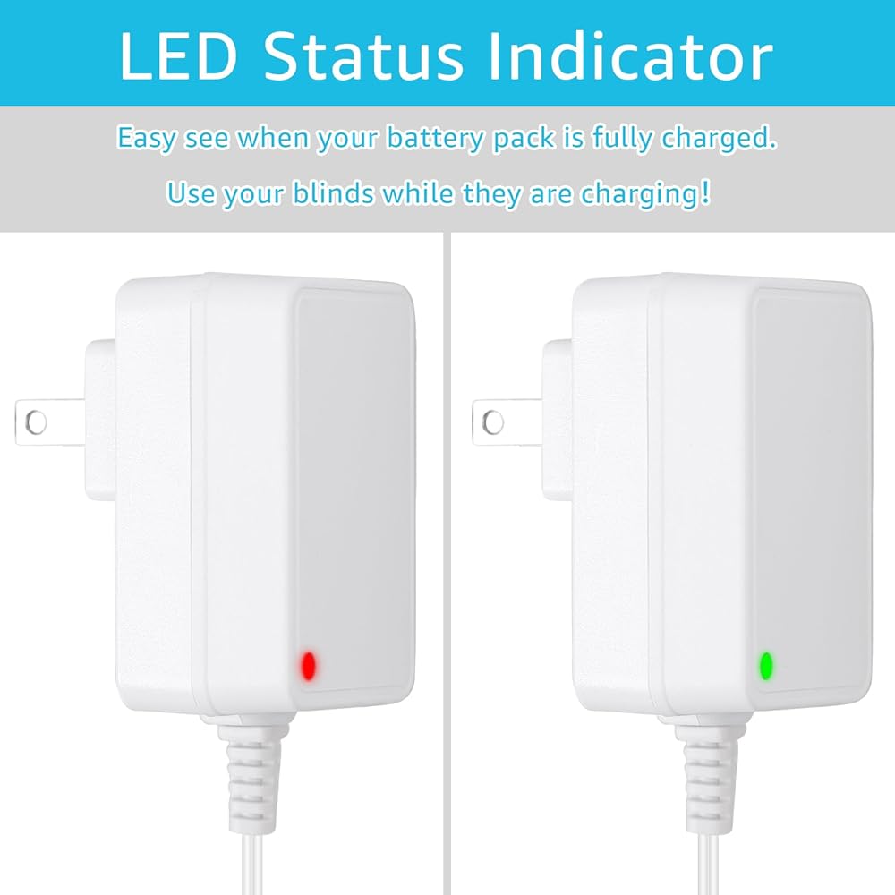 سهلة الاستخدام: تتميز بمؤشر LED، تُعلمك هذه الشواحن عند اكتمال الشحن، مما يضمن أن أغطية النوافذ الآلية الخاصة بك جاهزة للاستخدام دائمًا