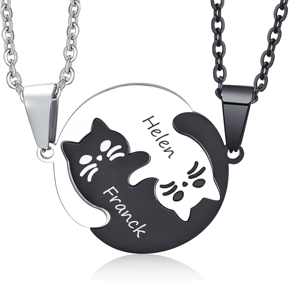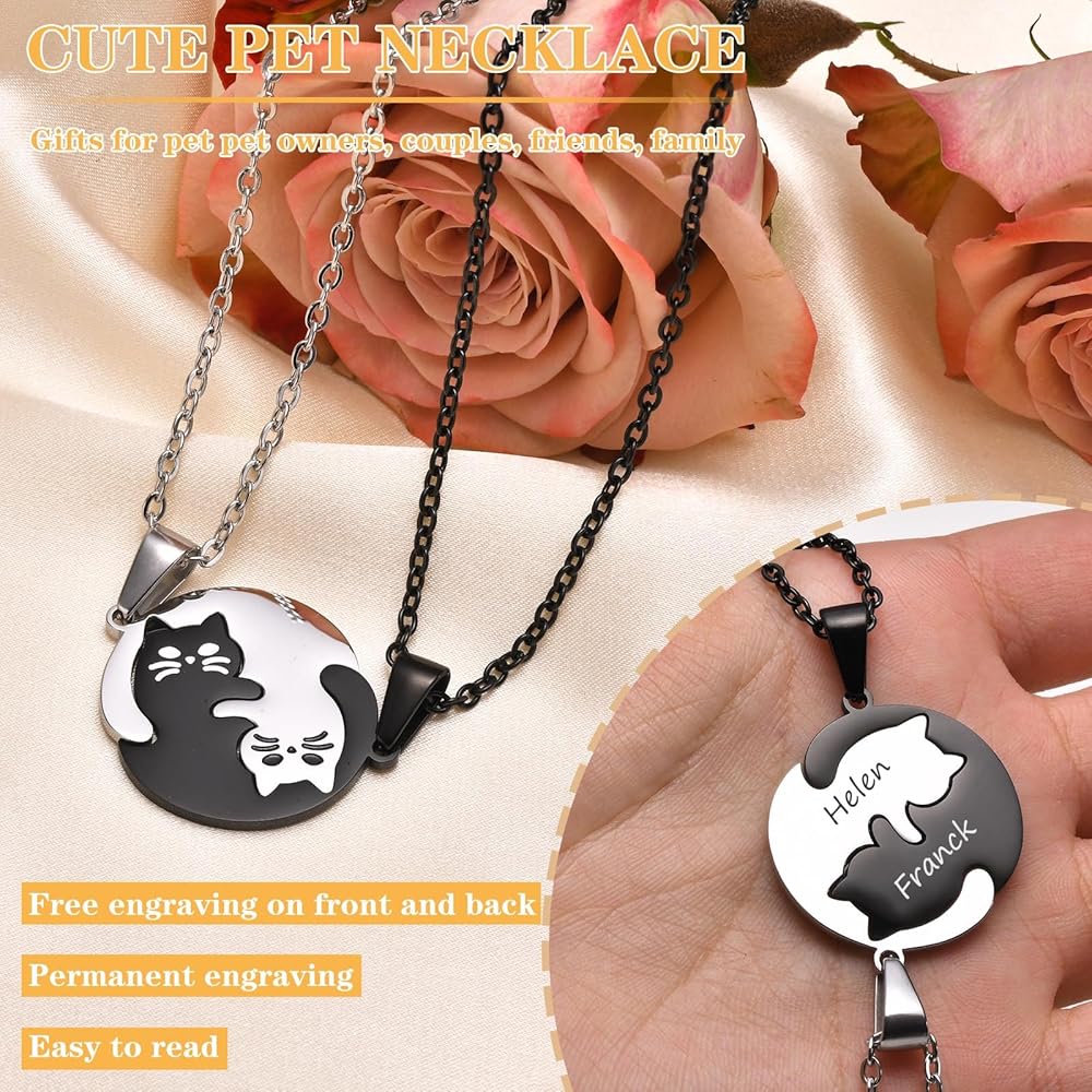 • 🐱هدية مطابقة للأزواج💕 مجموعة القلائد اللطيفة المطابقة للقطط هي طريقة رائعة لإظهار مدى عمق عاطفتك لمن تحب. 2 من القطط تعانق معًا، إنها هدية رائعة للذكرى السنوية وهدايا الخطوبة للأزواج، أفضل الهدايا لها أو لها، للصديق أو الصديقة، للزوج أو الزوجة، وللخطيب أو الخطيبة، وأيضًا أفضل هدايا المجوهرات للقطط الأليفة العشاق، أفضل الهدايا للأصدقاء.