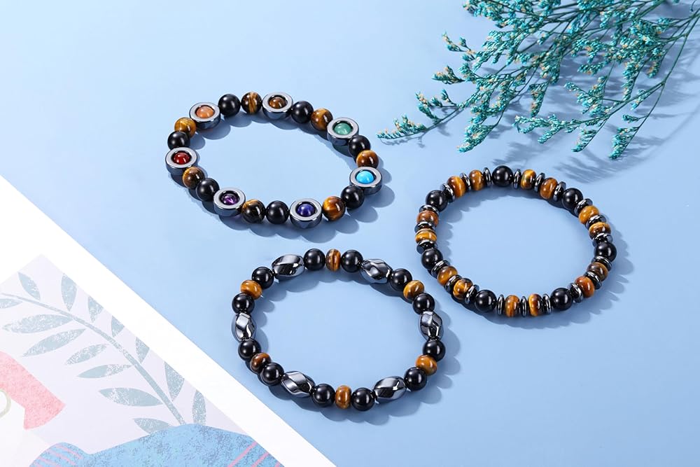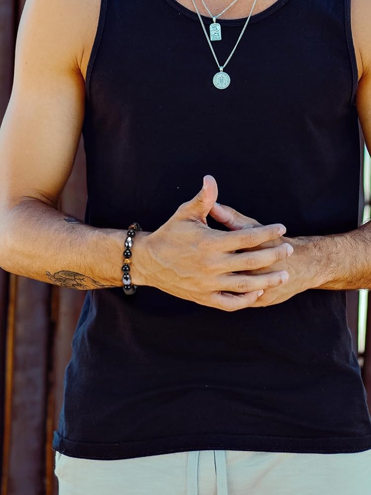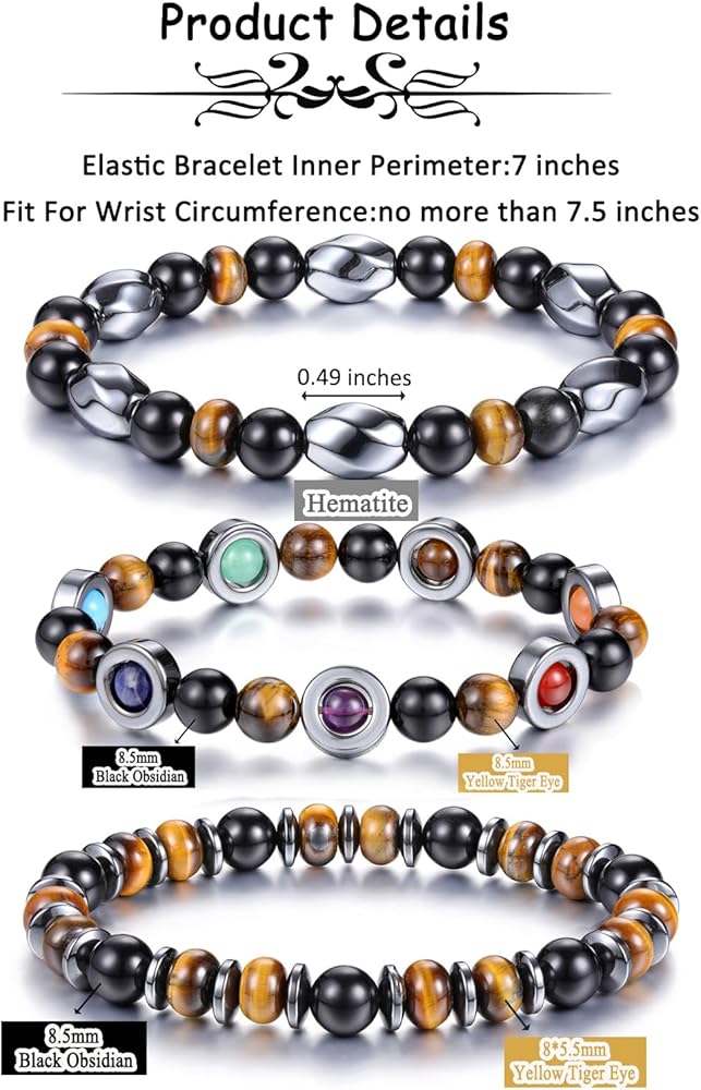 Material: Tiger's Eye, Hematite & Black Obsidian.
