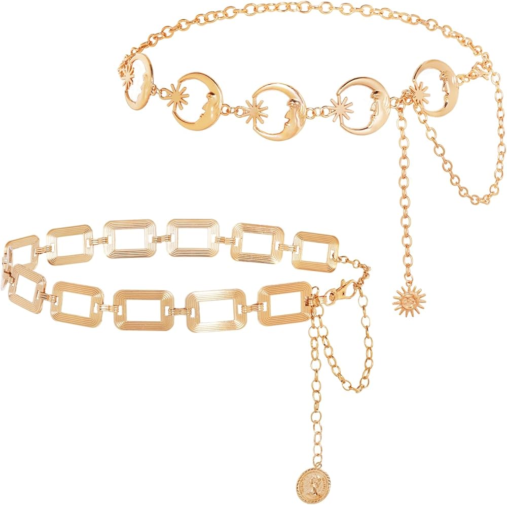 Gold Chain Belts for Women: This delicate metal chain belt set has a unique design;You can match with elegant dresses and so on, also can pair with casual daily clothes, stylish and versatile
