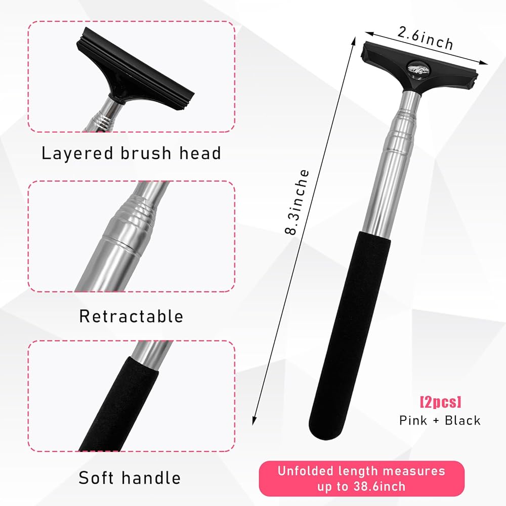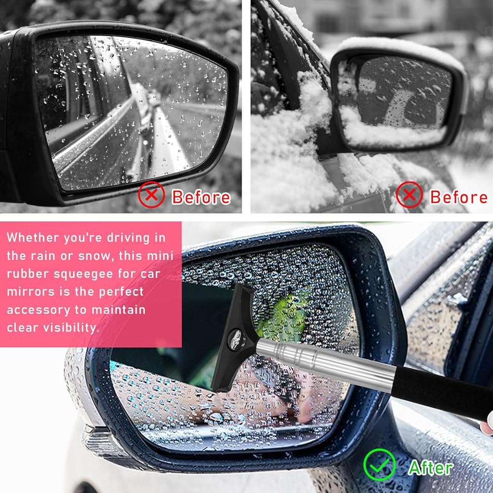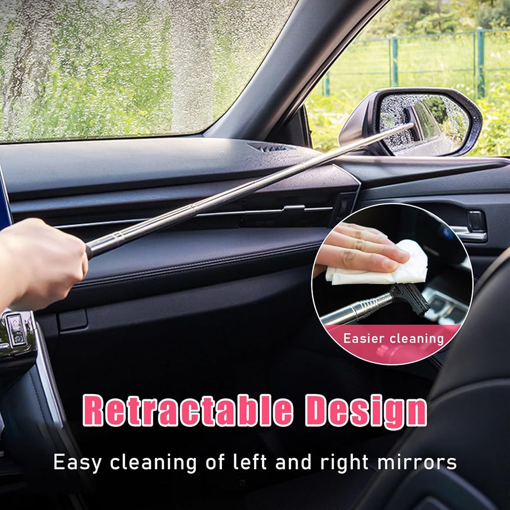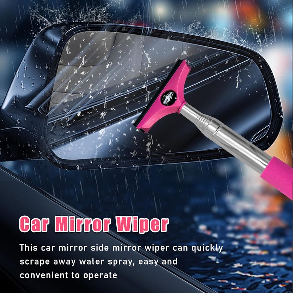 【Retractable Rod】: The wiper rod is made of stainless steel, which is strong and durable. Besides, it's retractable, extending up to 3.22 feet. It allows you to easily clean the left and right rearview mirrors, making cleaning and maintenance easier.