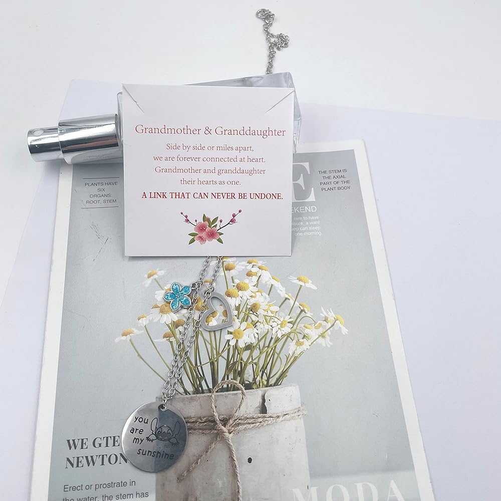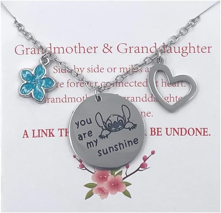 أساور الجدة والحفيدة - "أنت أشعة الشمس الخاصة بي" وغرزة لطيفة منقوشة على القلادة. شكرًا لك لأنك نور الشمس، لقد جلبت النور إلى حياتي