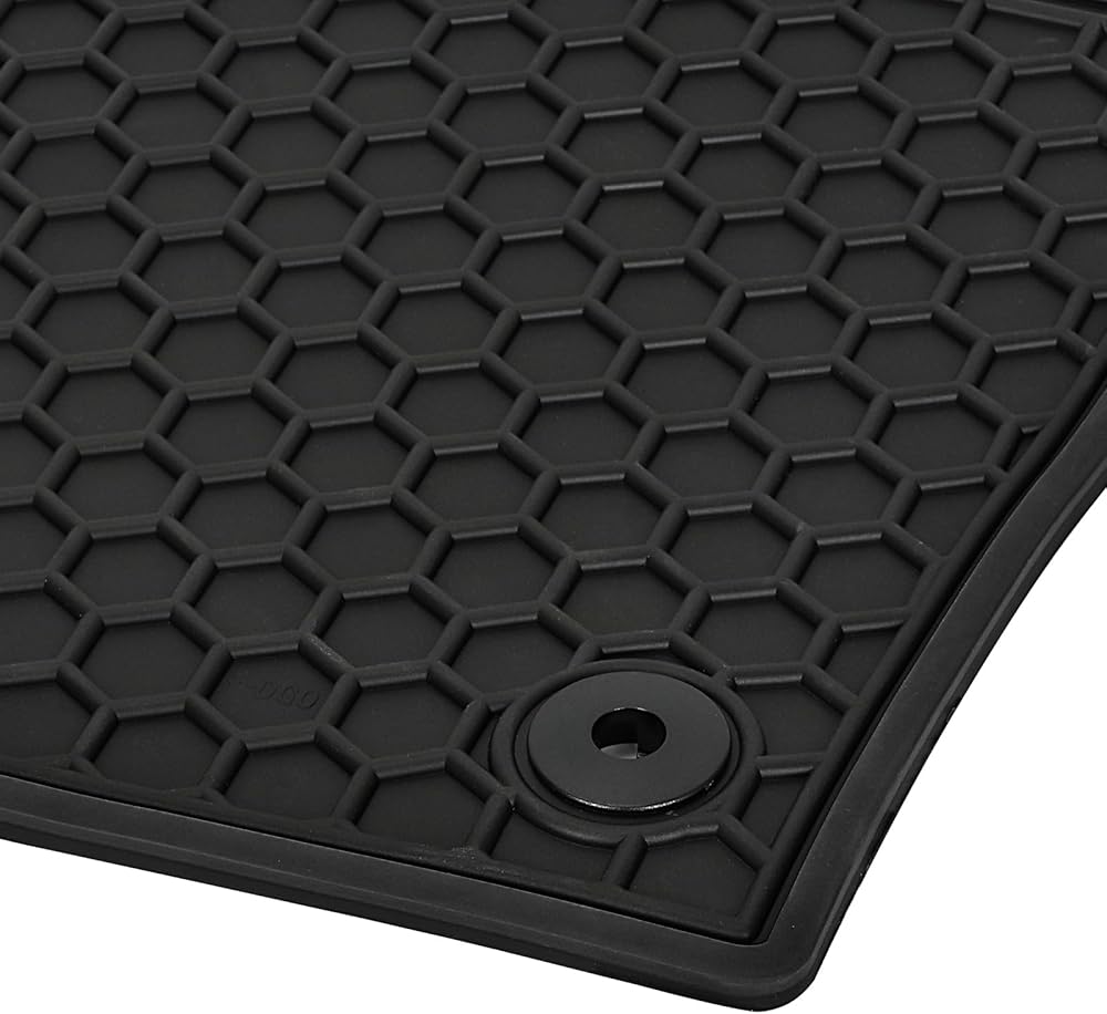 بطانات أرضية السيارة للحماية من جميع الأحوال الجوية: المنتج مصنوع من مطاط عديم الرائحة ومصمم لمنع تشوه درجة الحرارة العالية أو درجة الحرارة المنخفضة. السطح يشبه تصميم نمط الإطار، والذي يمكن أن يعزز وظيفة مقاومة الانزلاق.