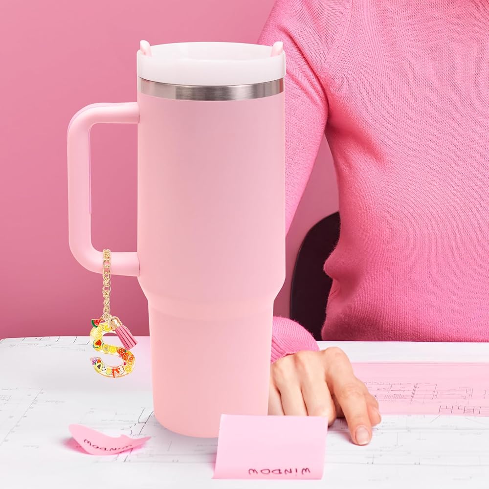ZOSIX Letter Charm Accessories for Stanley Cup 40/30 oz with Handle, [Upgraded Chain] Cute Initial Keychain Handle Charm for Stanley Tumbler Accessories for Girls Women, Pink