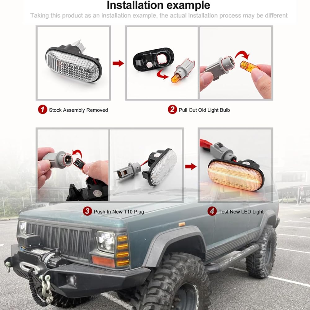 This listing features one pair full led front side marker repeater lamp assembly, updating your 1984-1996 J-eep Cherokee XJ LED Turn Signal Reflector Sidemarker Clearance Lights.