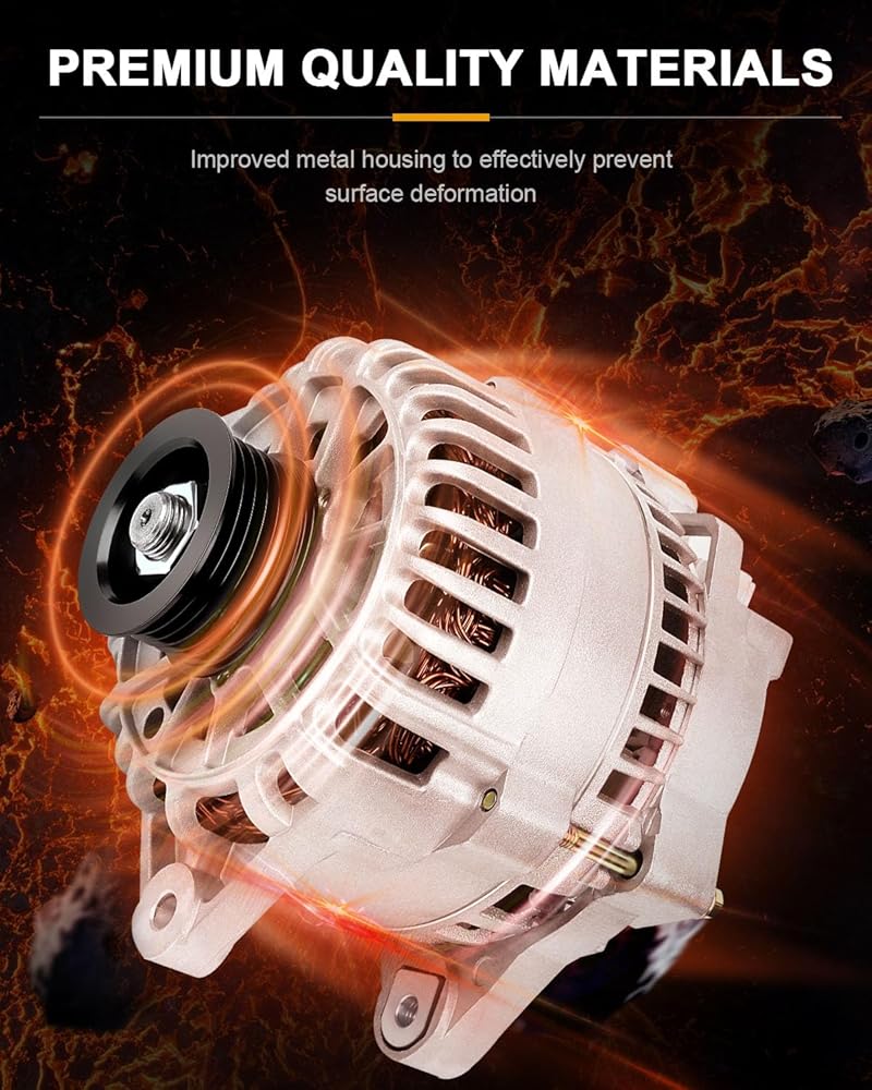 【قوي ومتين】يتميز مولد التيار العالي الإخراج ROADFAR بمحامل أكبر، ودوائر محسنة: 110 أمبير/12 فولت؛ زيادة الإنتاج وأحكام إضافية للتبريد: منظم داخلي ومروحة؛ التي تقلل الضغط على المولد وتزيد من العمر المتوقع لتجربة قيادة أكثر موثوقية