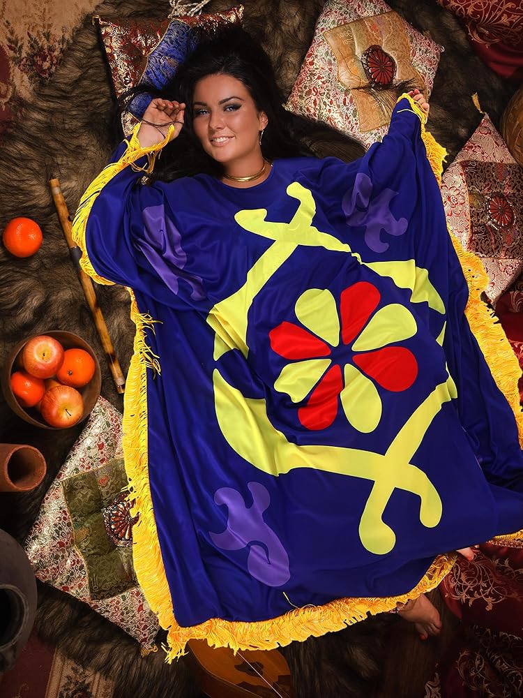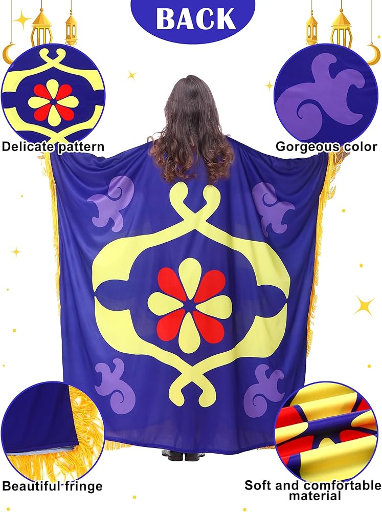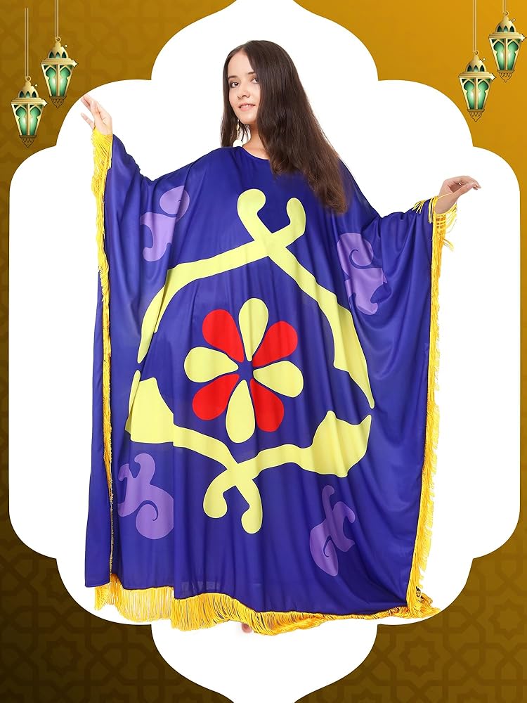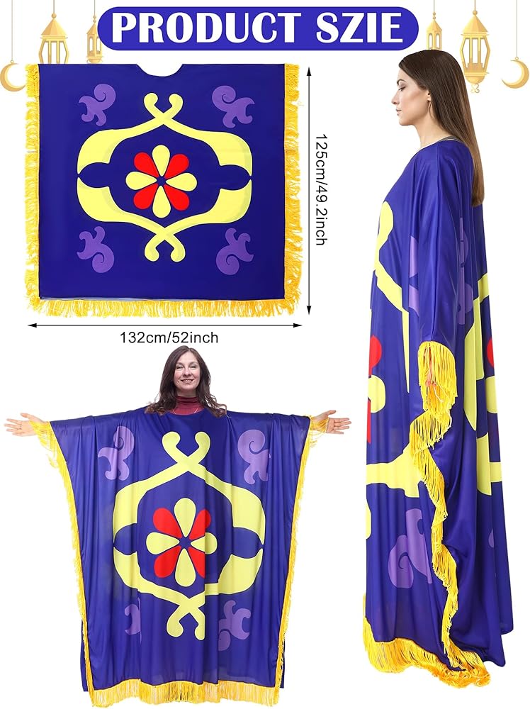 • Carpet Costume in All Its Glory: our package includes a delicate Arabian carpet costume to elevate your cosplay experiences; Designed with care and precision, this costume allows you to indulge in Halloween ambiance, making your time memorable; Step into the mystical world of Arabian nights, and be prepared to turn heads in every room you step into with our delicate cosplay dress; Dress to impress and create unforgettable Halloween memories