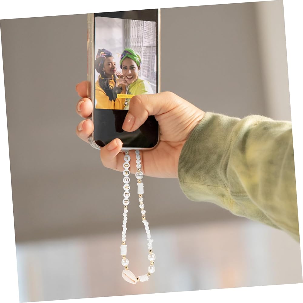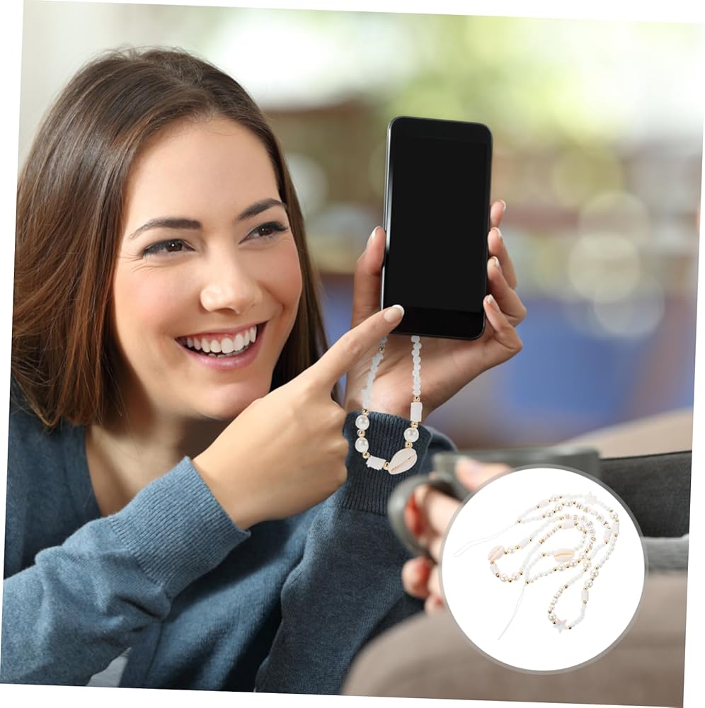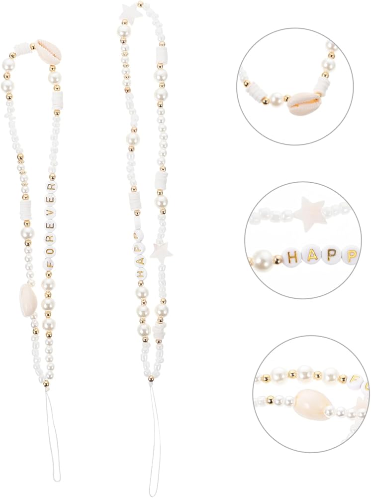 UKCOCO 2 قطع قذيفة الهاتف سلسلة إلكتروني ديكور الدعامة الهاتف البوهيمي ديكور الاكريليك الأبيض الإبداعية سلسلة الهاتف المحمول الهاتف شنقا الخرز سلسلة ديكور الهاتف شنقا الخرز سلسلة الخماسي