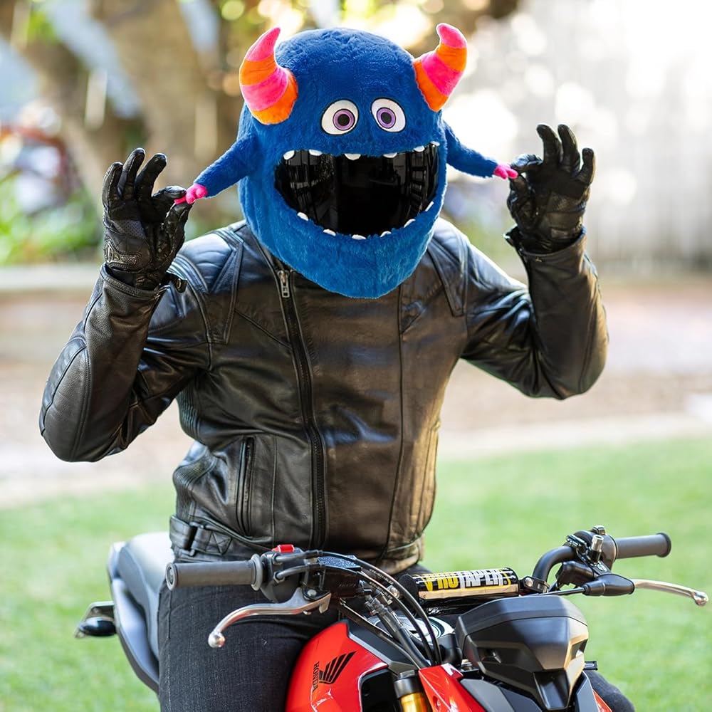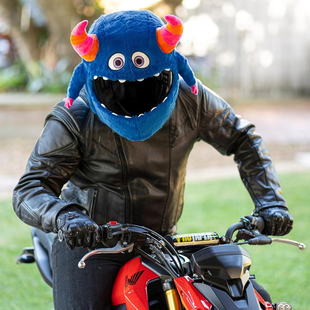 Children will laugh, heads will turn and you'll make everyone a little happier when you rider past wearing this Horned Monster helmet cover. Everywhere you ride people will laugh, wave, give you thumbs up and take pictures. Don't be surprised if you find yourself staring on multiple social media pages after going for a ride wearing this fun helmet cover.