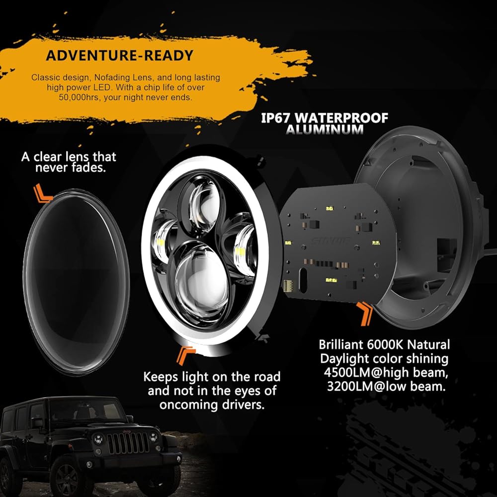 • 【استبدال مناسب تمامًا لمصابيح رأس الهالوجين مقاس 7 بوصة من OEM 】يناسب تمامًا (2007-2018)JK/JKU، (1997-2016)TJ، (2004-2006)LJ، (1976-1986)CJ