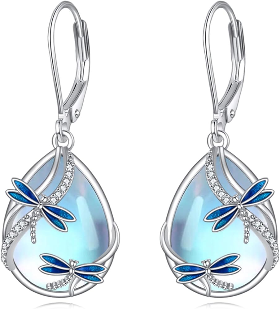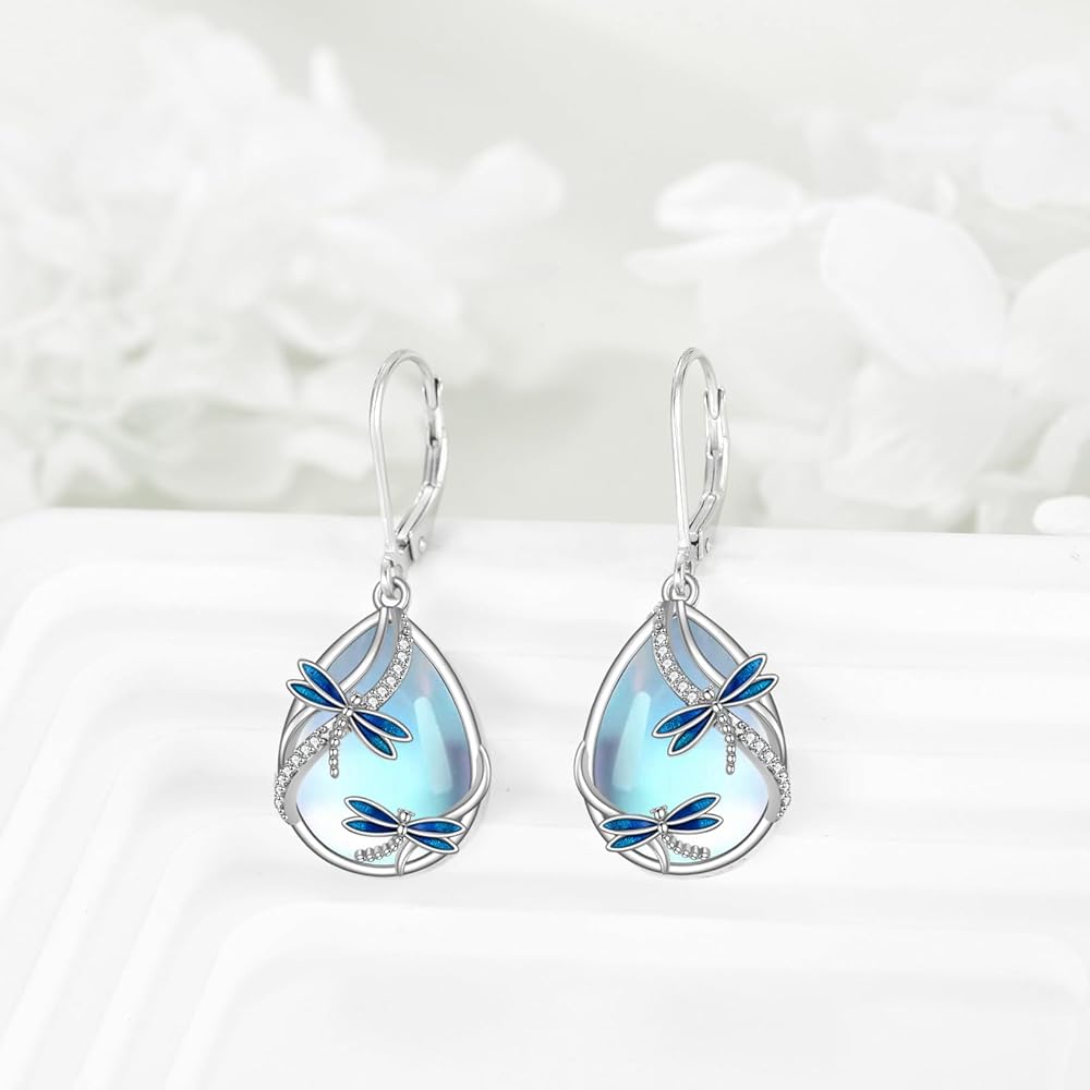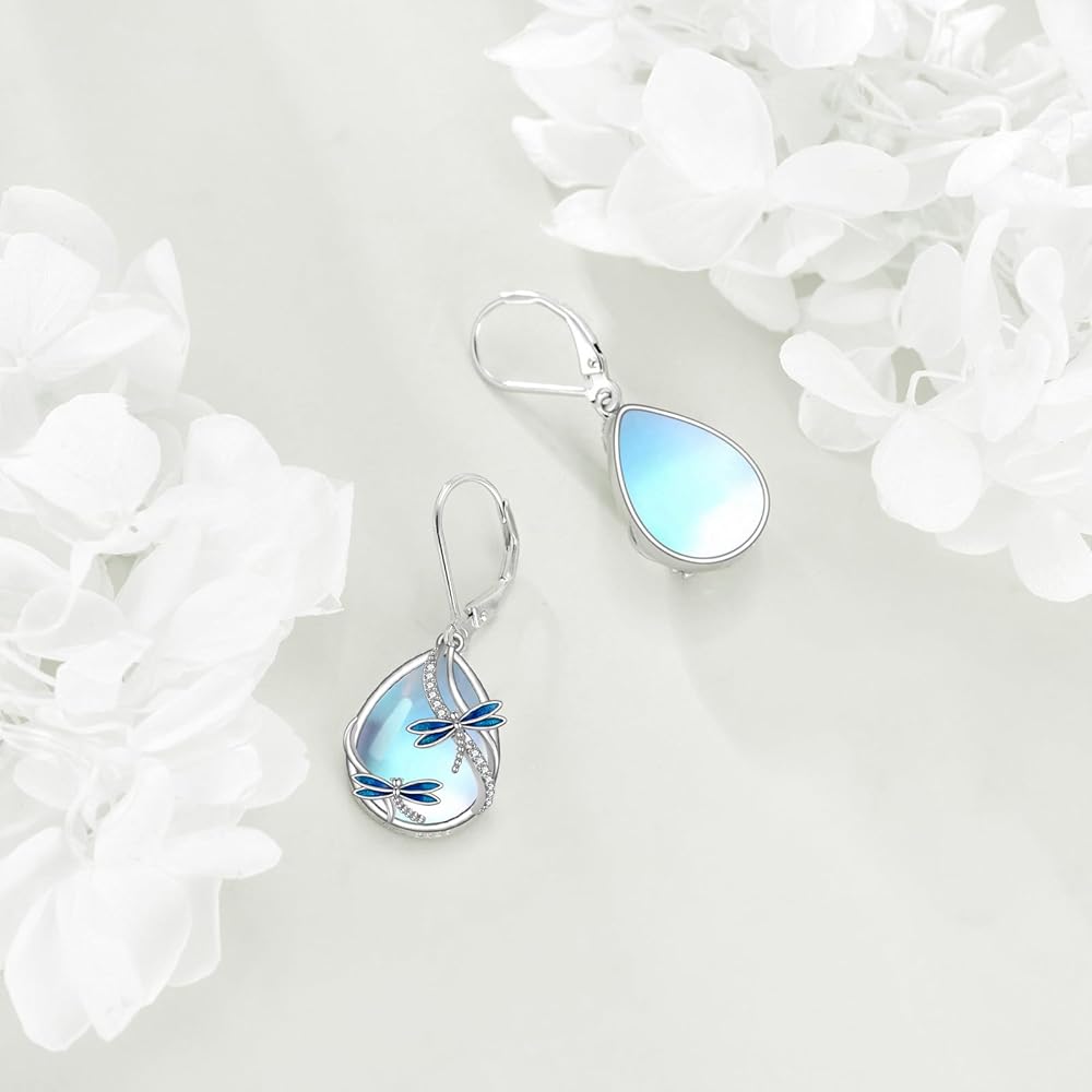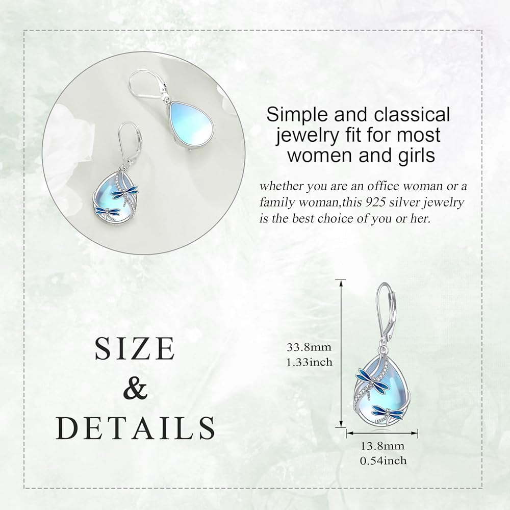 ✨ Materia ✨ Dragonfly earring for women is made of sterling silver, Moonstone, no nickel, no lead, no cadmium, anti-allergic and suitable for long-term wear, not easily discolored.