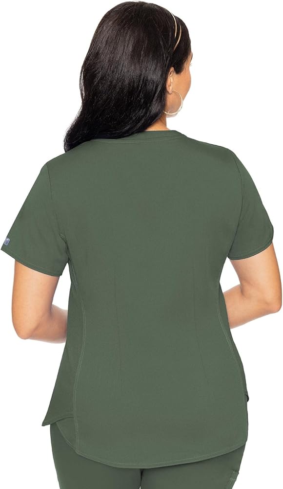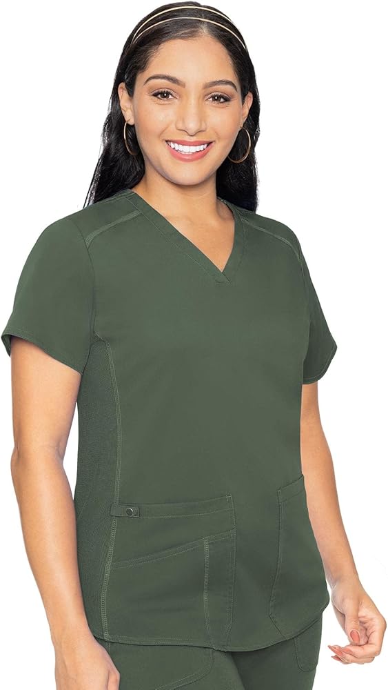 طقم سكراب للنساء من ميد كوتور، 11 جيبًا مع بلوزة سكراب برقبة على شكل حرف V MC7459 وسروال مريح، MC7739، زيتوني - توب M/بنطلون طويل القامة
