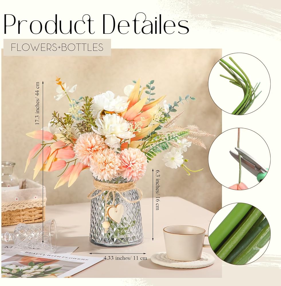 These enchanting silk flower arrangements can be placed in different spaces. They are suitable for decorating mantles, bookshelves, side tables, nightstands, desks, and coffee tables. Consider it a lasting and beautiful addition to your home decor, serving various decor styles.
