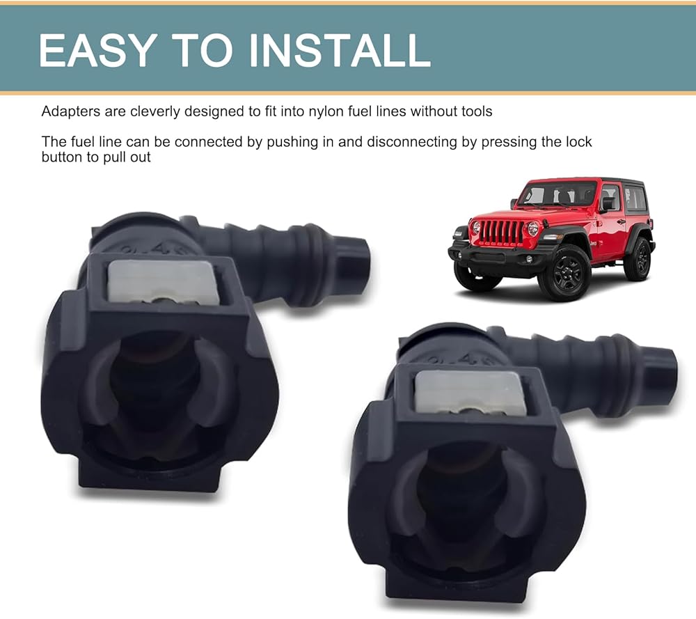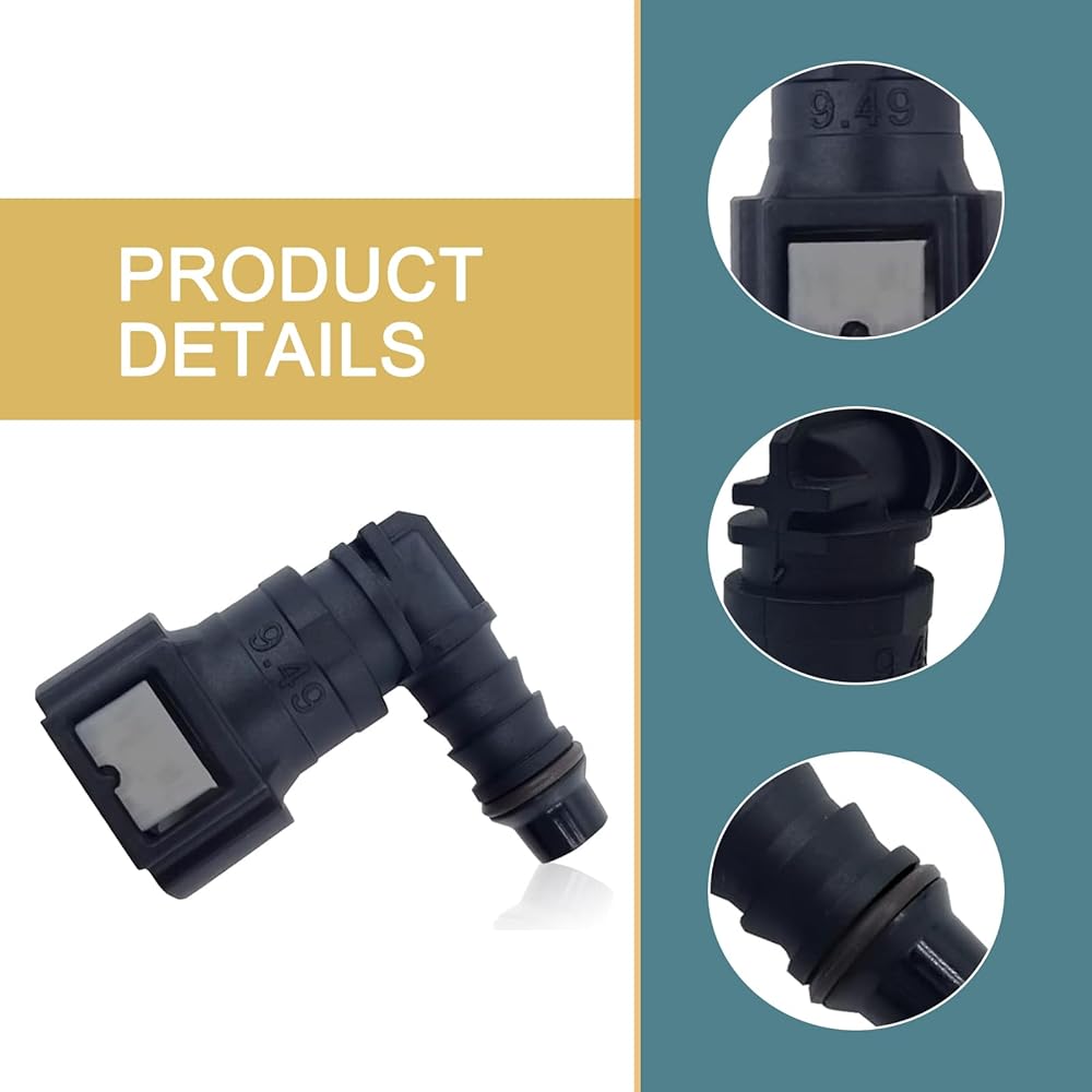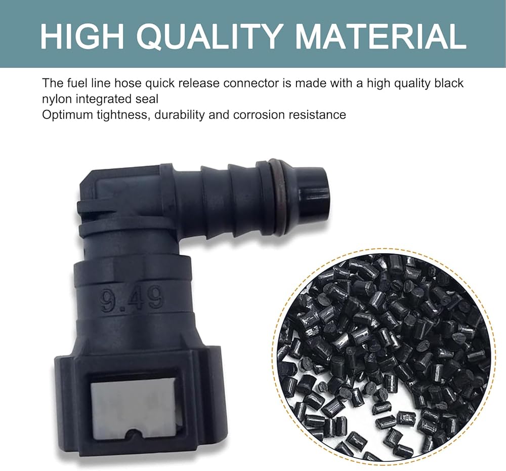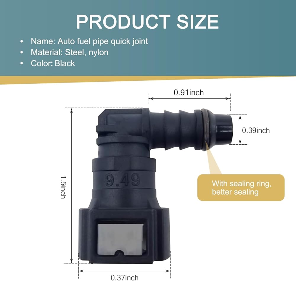 Jewkot 2 PCS Automotive 9.49-ID8 Elbow with Seal Ring Fuel Line Quick Connector, PA12 Plastic Fuel Pipe Connection Adapter, Modification and Repair Replacement Parts, Suitable for Most Cars (Black)