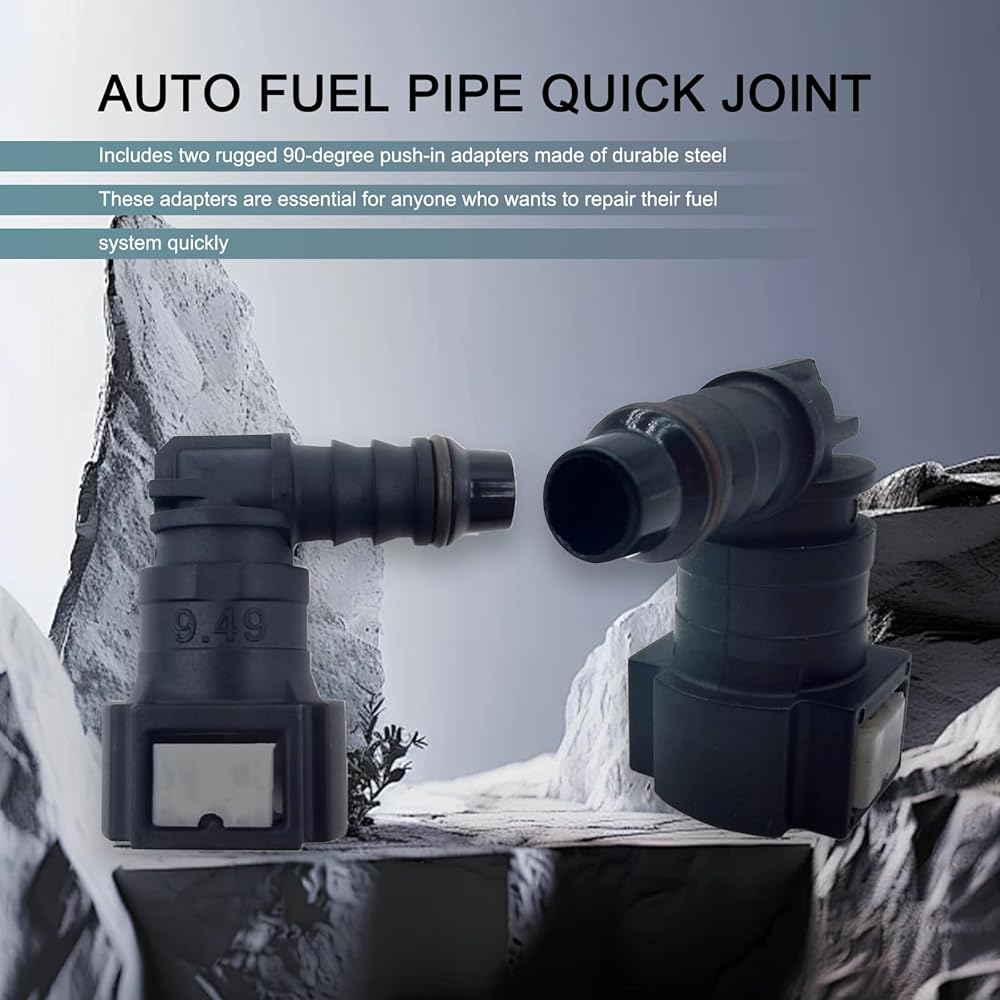 قطعتان من كوع السيارة 9.49-ID8 مع موصل سريع لخط الوقود الدائري، محول توصيل أنابيب الوقود البلاستيكية PA12، قطع غيار التعديل والإصلاح، مناسبة لمعظم السيارات (أسود)