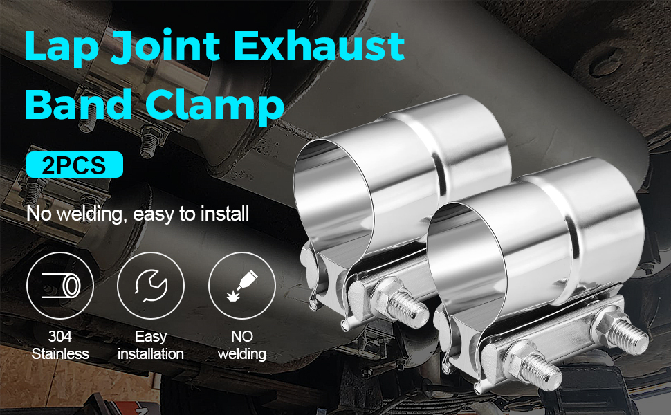 مشبك شريط عادم مشترك 2.5 بوصة - مشبك شريط عادم مشترك من الفولاذ المقاوم للصدأ 2 حزمة