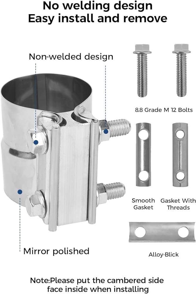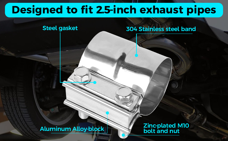 - عالمي: مصمم ليناسب أنابيب العادم مقاس 2.5 بوصة، مما يضمن اتصالاً محكمًا وآمنًا. استمتع بنظام عادم آمن ومانع للتسرب!