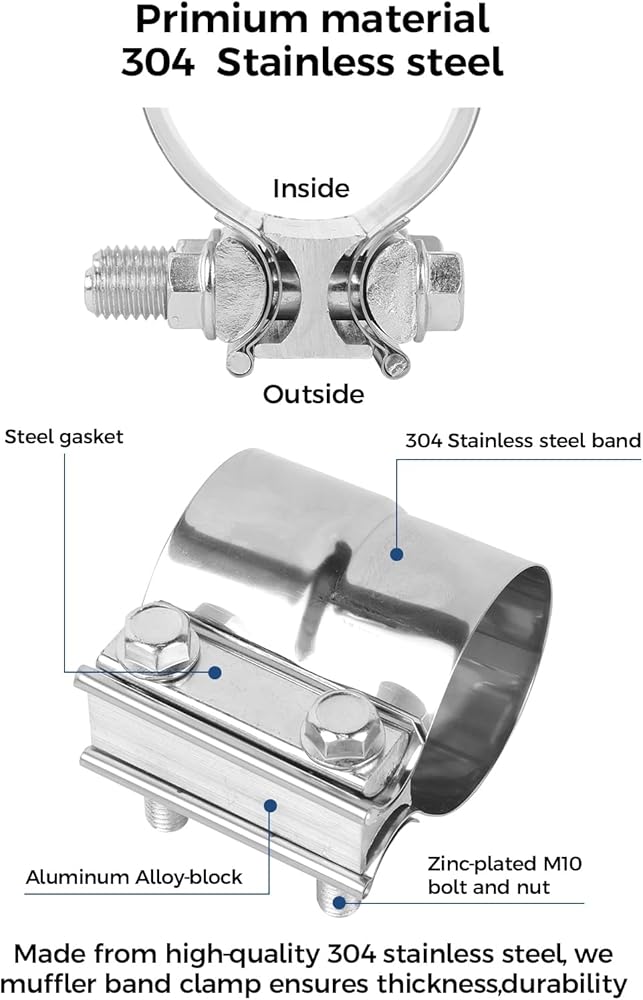 - جودة عالية: تم تصنيع مشبك شريط العادم مقاس 2.5 بوصة من الفولاذ المقاوم للصدأ الفاخر لتحقيق أقصى قدر من المتانة ومقاومة الصدأ والتآكل.