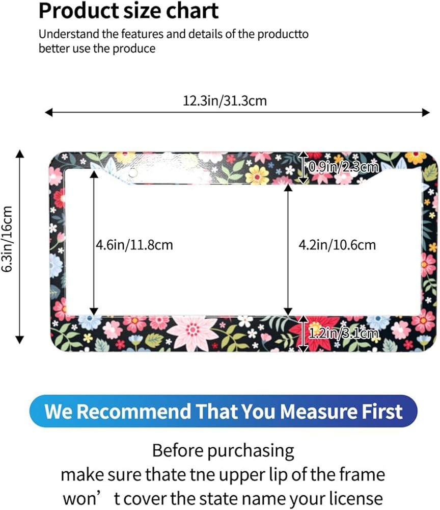 Standard License Plate Size: Our license plate frame size is 12.3 x 6.3 inches, fits most of standard size U.S. license plates, and perfectly match your car license plate accessories.