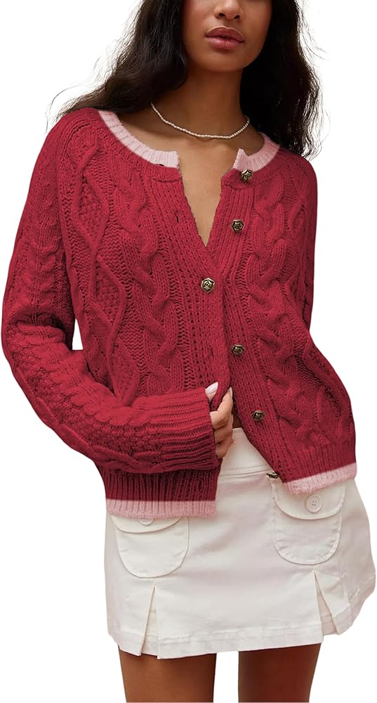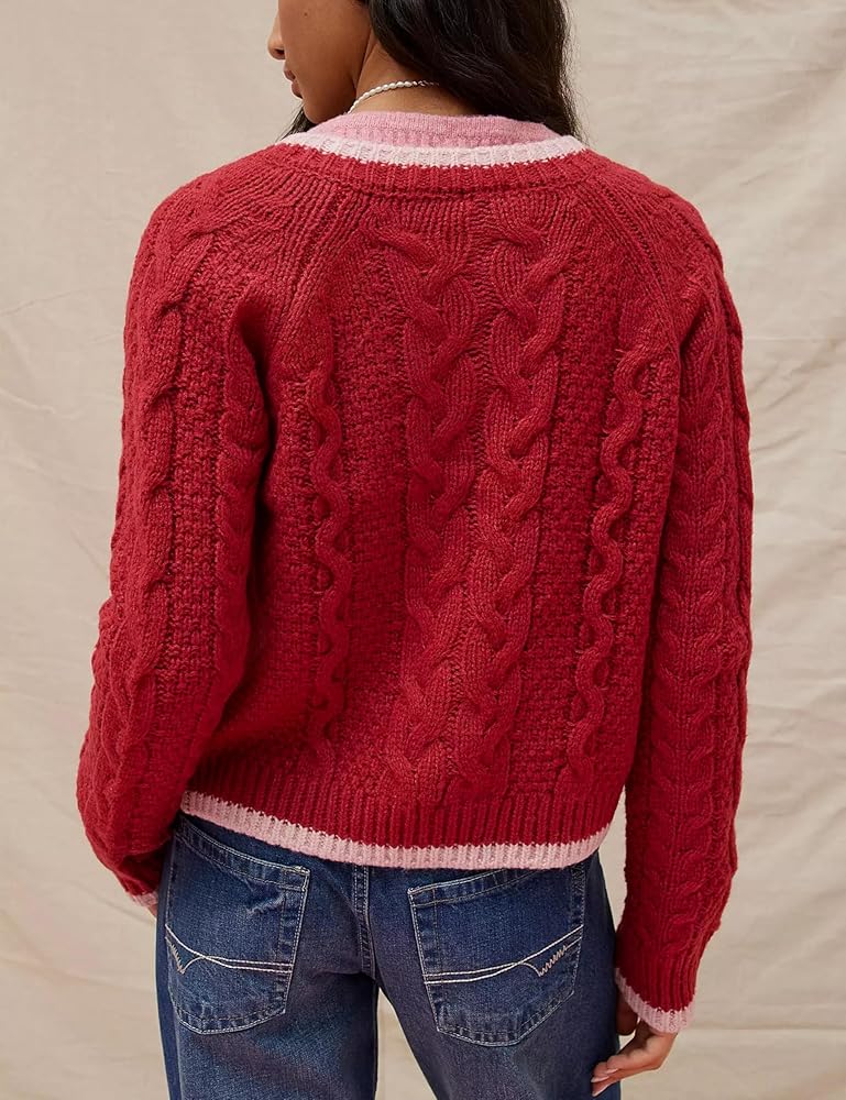 السترة العلوية ذات الأكمام الطويلة مصنوعة من نسيج محبوك ناعم ومريح، والسترة ذات الألوان المتضاربة غنية بالملمس لتمنحك تجربة مريحة. ملمس دافئ وسميك، مناسب للربيع والخريف والشتاء