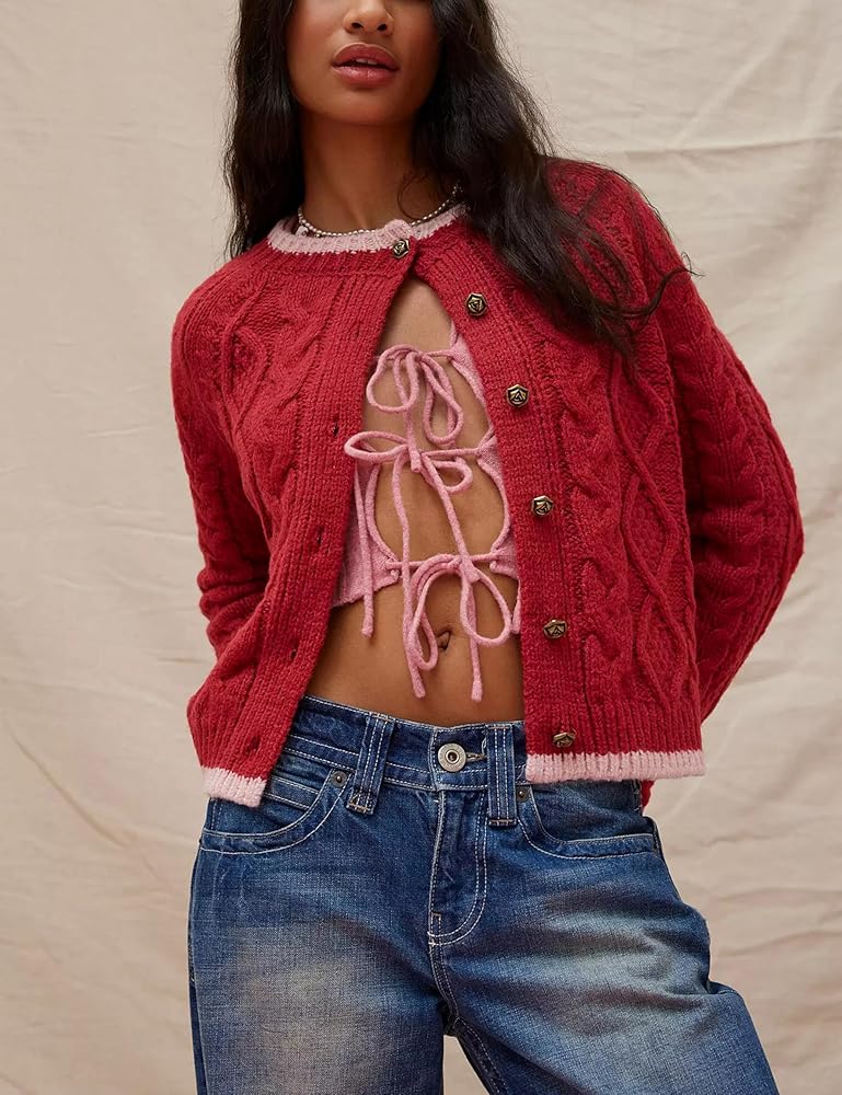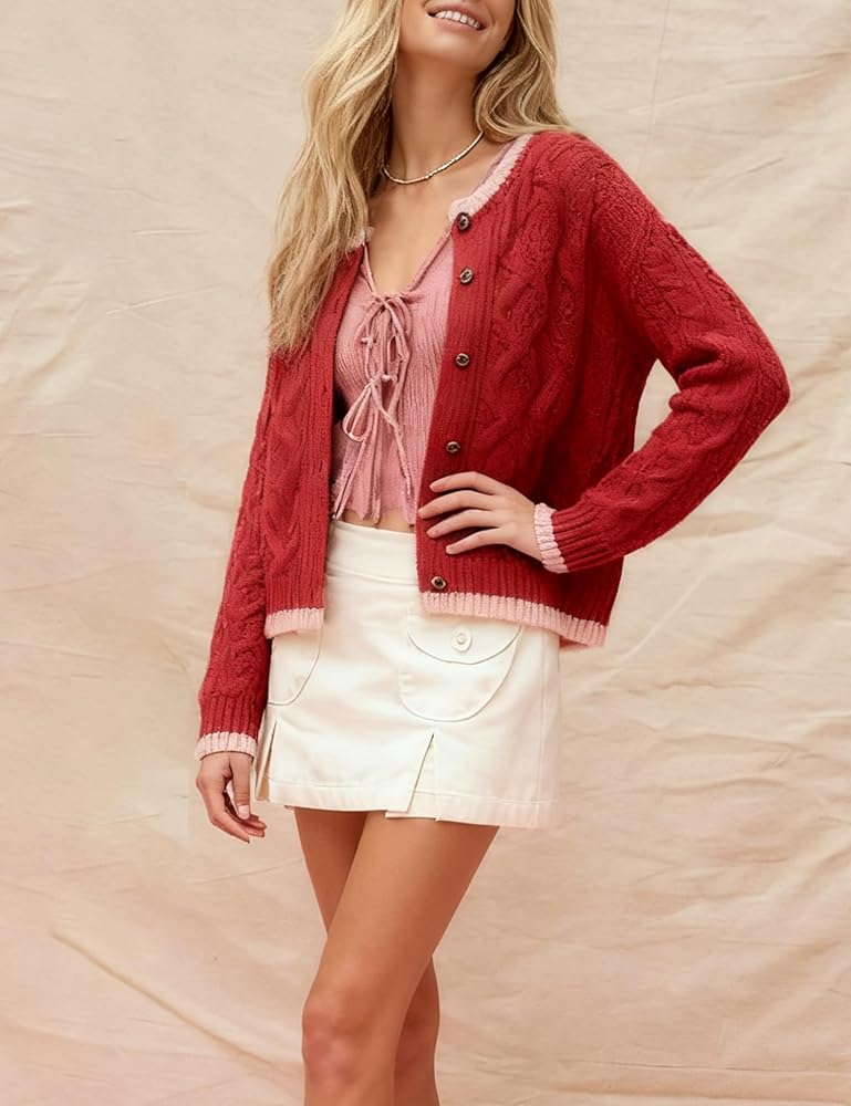 تتميز السترة النسائية بأزرار إغلاق أمامية، وتصميم متشابك الألوان، وحاشية مضلعة، وتفاصيل رائعة لتصميم أكثر أناقة