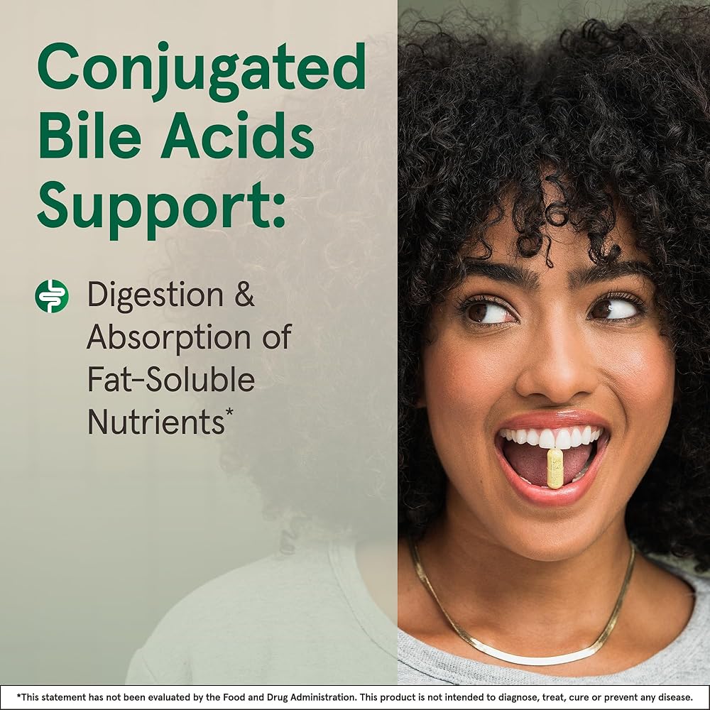 Conjugated bile acids, or bile salts, help emulsify fats in the small intestine to support fats and fat-soluble nutrient digestion and absorption.*