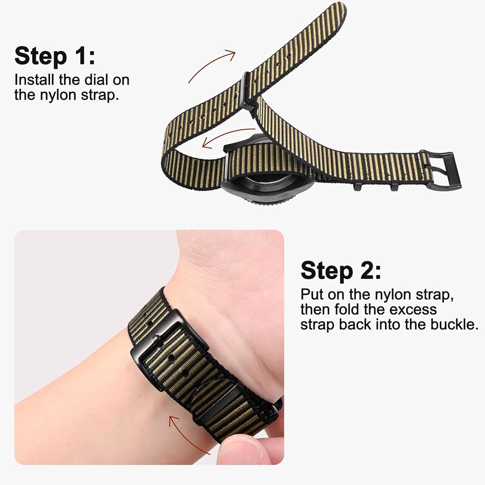 تركيب سريع: يحتوي سوار الساعة على أجهزة سريعة الفك، متوافقة مع معظم الساعات التقليدية أو الذكية التي تستخدم قضبان زنبركية 18 مم، 20 مم، 22 مم. قضبان زنبركية سريعة التحرير متضمنة ومدمجة في الحزام. لا توجد أدوات أو درجات هندسية مطلوبة.