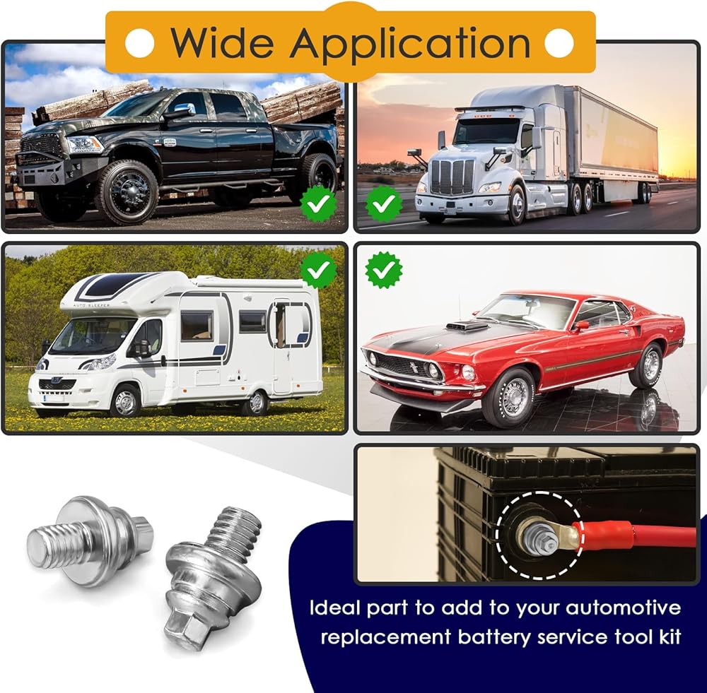 كمية وافرة: يمكن استبدال هذه المجموعة المكونة من 20 مسمارًا بسهولة لتسهيل توصيل كابلات التوصيل والحفاظ على طاقة موثوقة لسيارتك أو جرارك أو أي مركبة أخرى