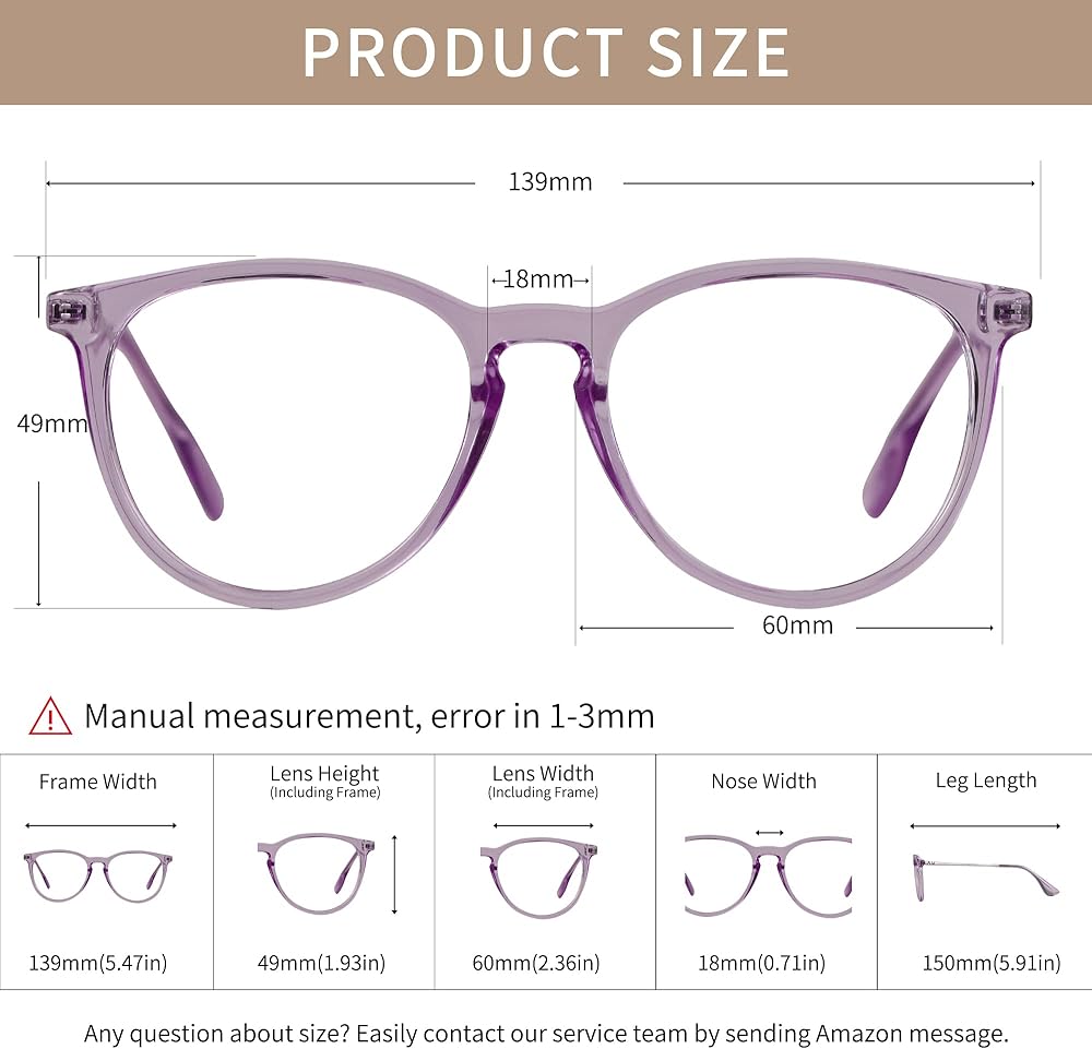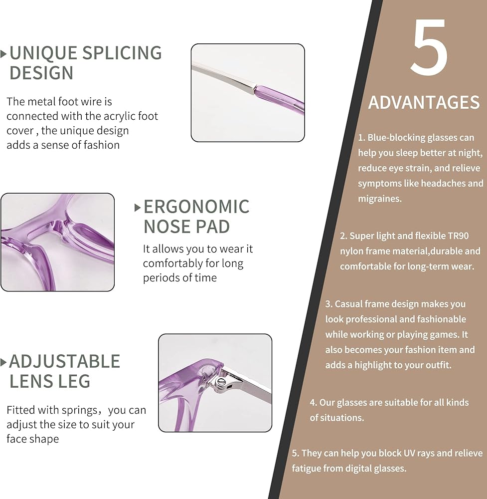 • 【إطار متين عالي الجودة 】 ▶ مادة إطار TR90 خفيفة للغاية ومرنة، متينة ومريحة للارتداء طويل الأمد. يتيح لك تصميم الإطار المستدير أن تبدو أنيقًا أثناء العمل أو ممارسة الألعاب.