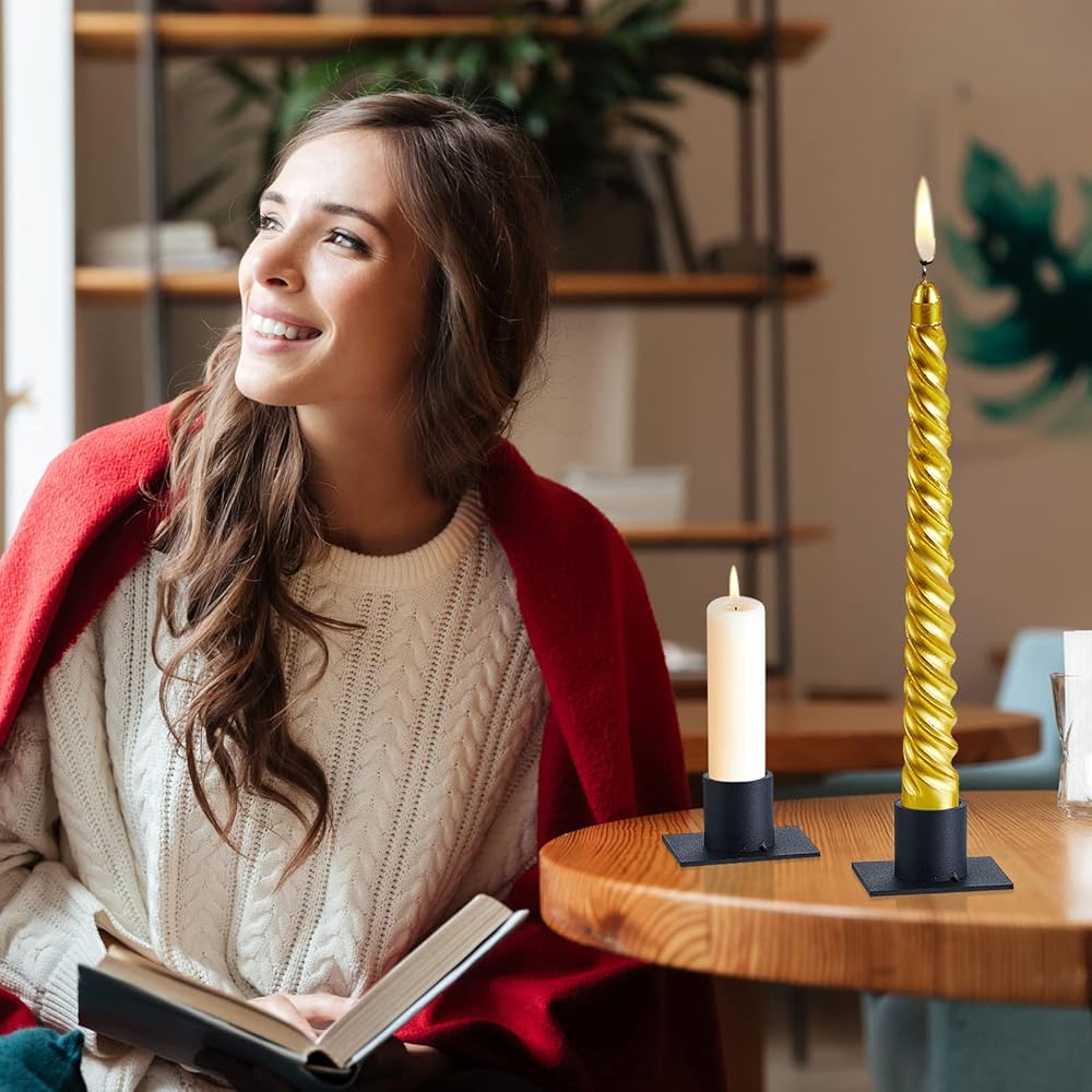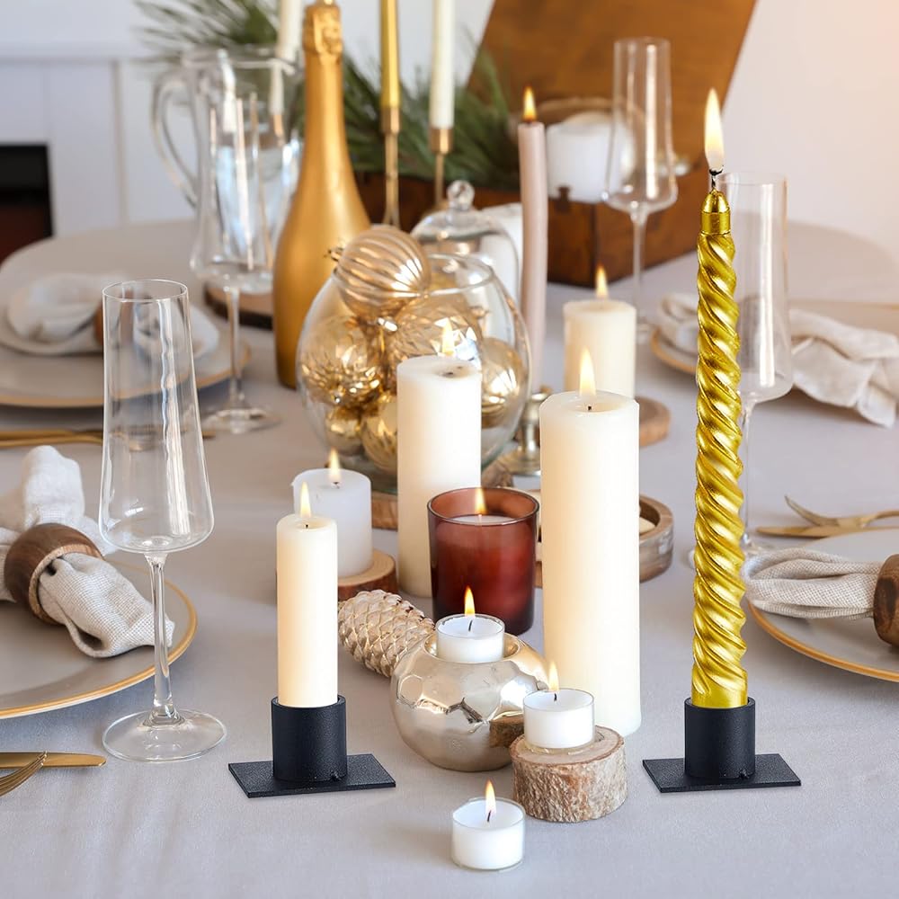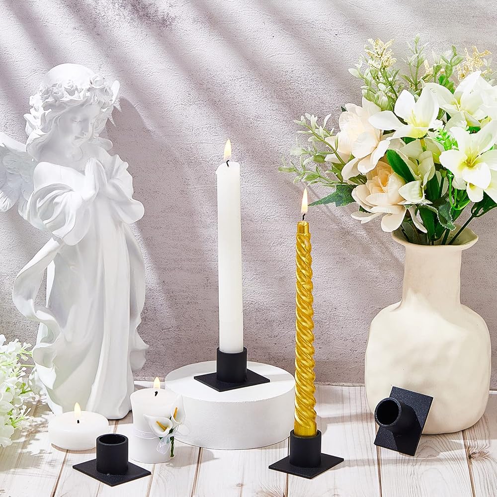 These farmhouse candle holders are black with a matte finish on the surface, with cylindrical part for holding candles and square base, simple and elegant, rustic and vintage, can easily match your modern or farmhouse style home.