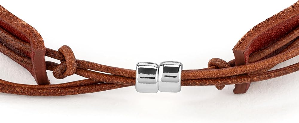 DEMDACO حلية متقاطعة دائرية، لون بني/فضي مقاس 8.5 بوصة من الجلد/المعدن للرجال سوار عصري يومي