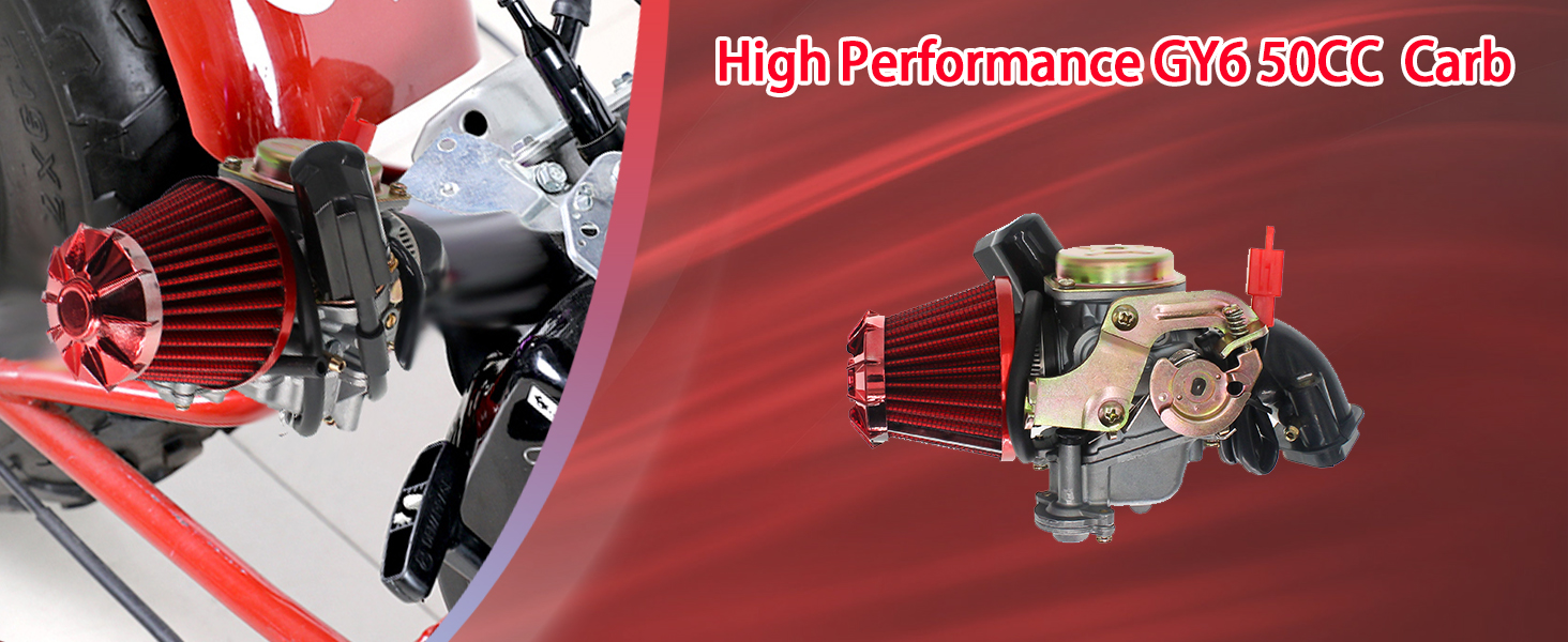 【مادة متينة】مكربن GY6 مصنوع من مادة ألومنيوم عالية الجودة، ومتين للاستخدام لفترة طويلة. مع هذا المكربن عالي الجودة، يمكنك توقع تسارع محسّن واستجابة الخانق والأداء العام لمحرك GY6 50CC الخاص بك.