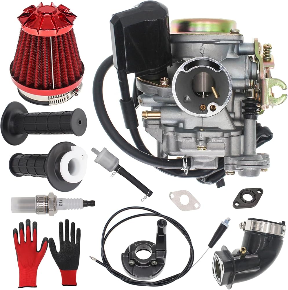 【مكربن GY6 】مكربن GY6 50cc سهل التركيب. استبدل المكربن، وستحصل على الكربوهيدرات الموثوقة والمتينة إلى حد ما للمساعدة في تقديم الأداء الأمثل للمحركات. تتضمن هذه الحزمة 1 × 50 سم مكعب GY6 مكربن، 1 × 50 سم مكعب مشعب السحب، 1 × قابس الإشعال، 1 × فلتر هواء، 1 × فلتر وقود، 1 × مقابض الخانق والكابلات
