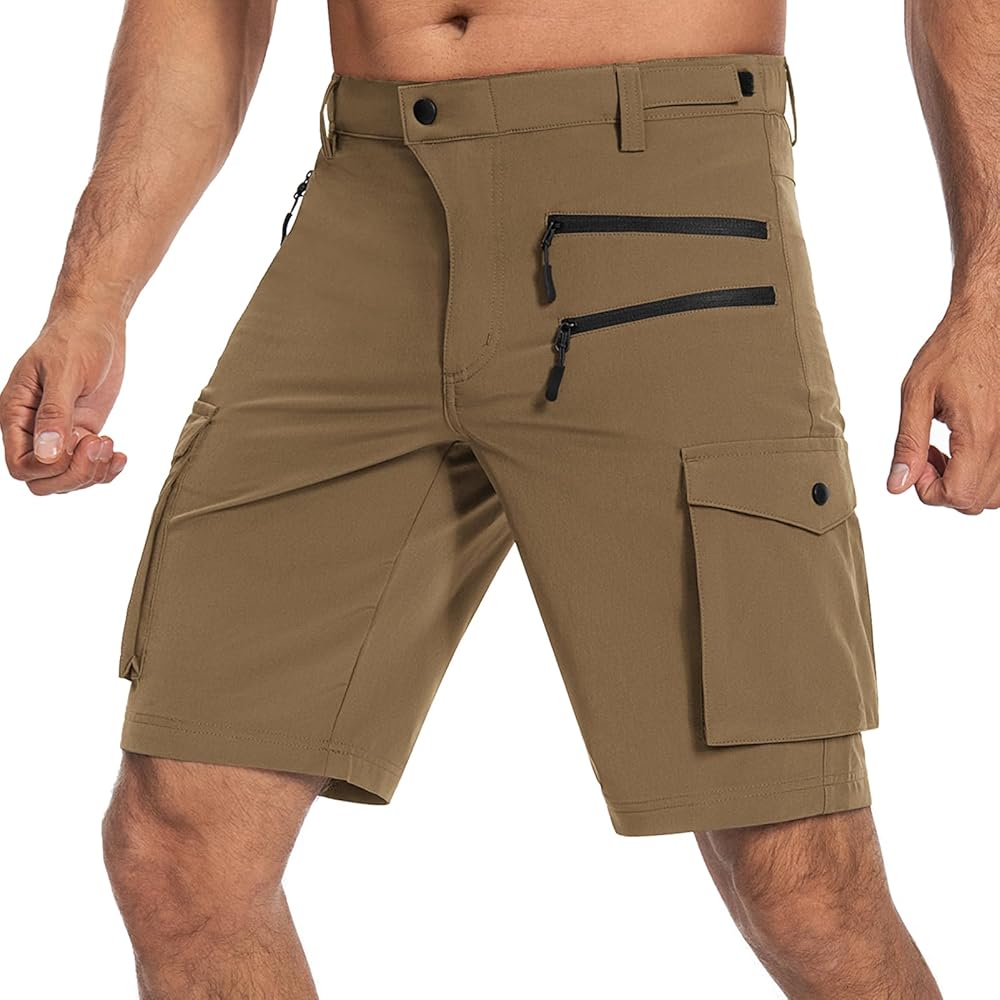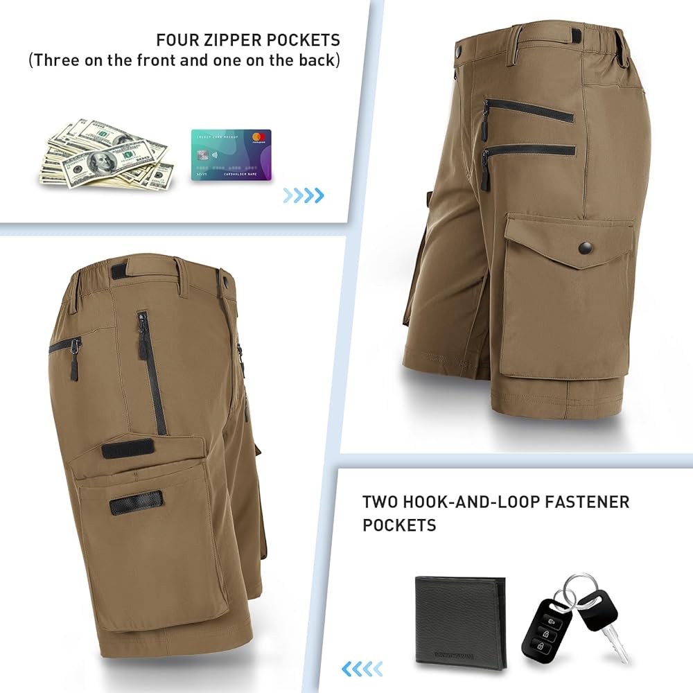 تصميم خصر قابل للتعديل: تتميز شورتات العمل للرجال بحزام خصر مرن وحلقات حزام على الظهر، كما تسمح لك عروات تعديل خطاف وحلقة على الجانب بشد الخصر بشكل صحيح.