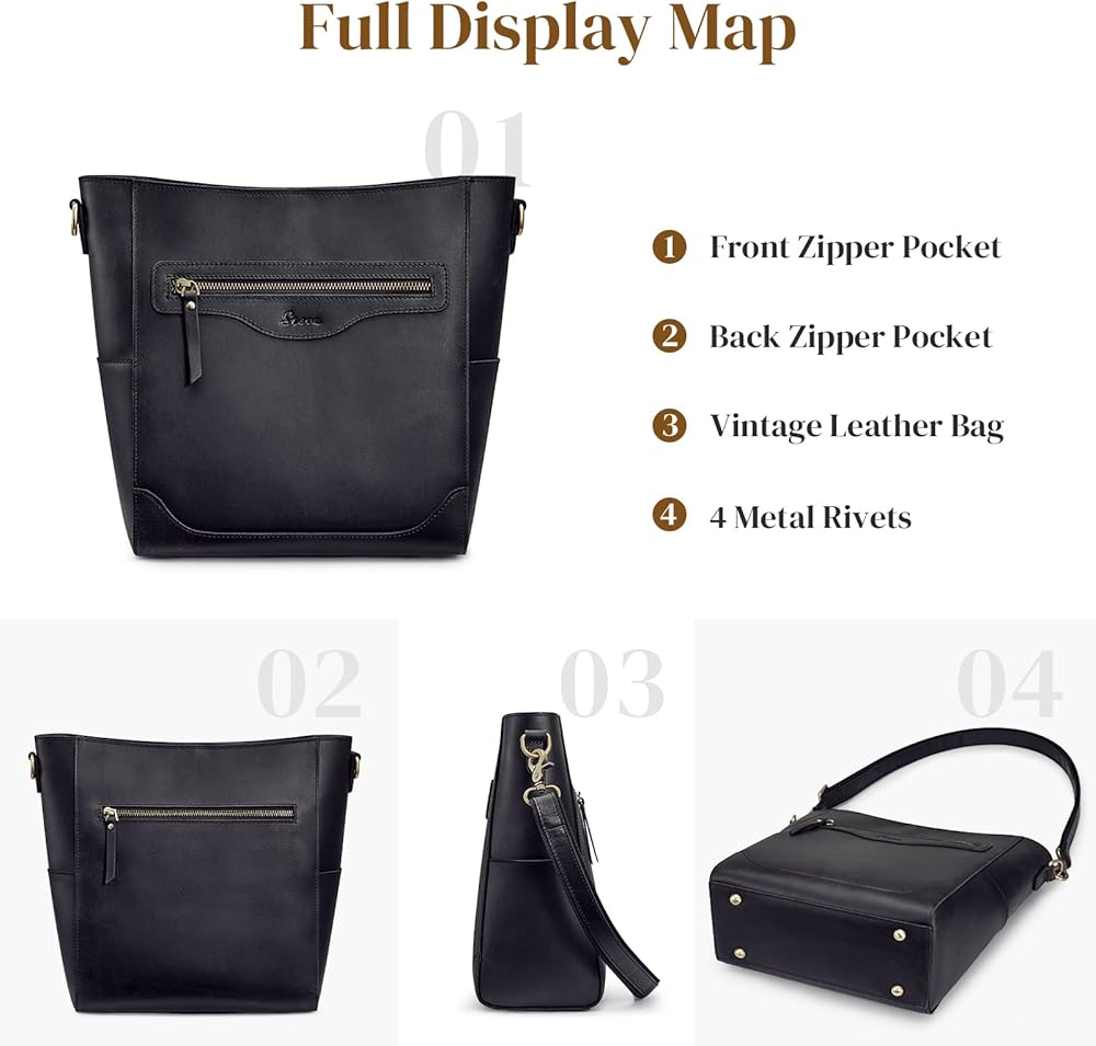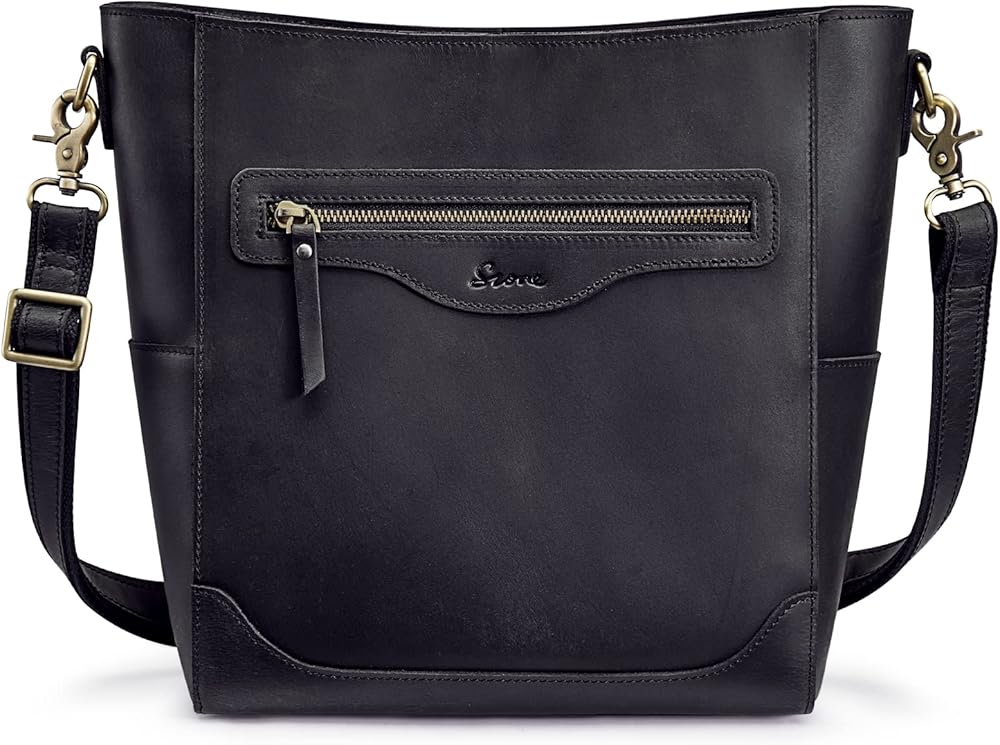 حقيبة يد نسائية من الجلد من S-ZONE مع حقيبة قماشية مع محفظة دلو كروس