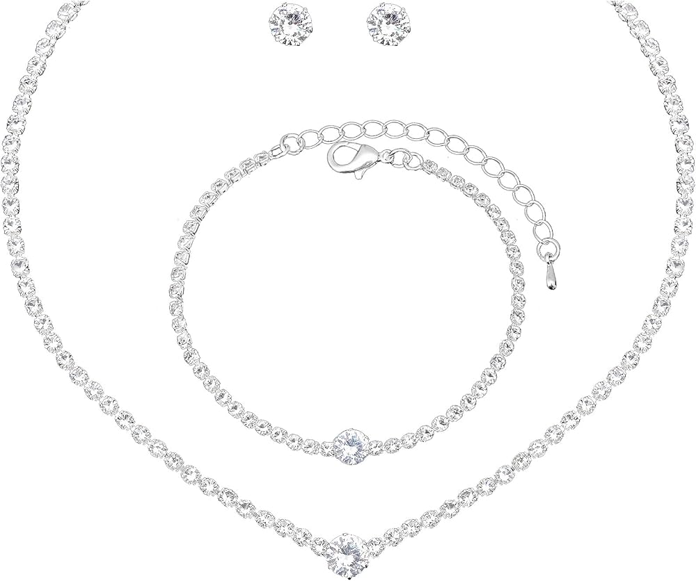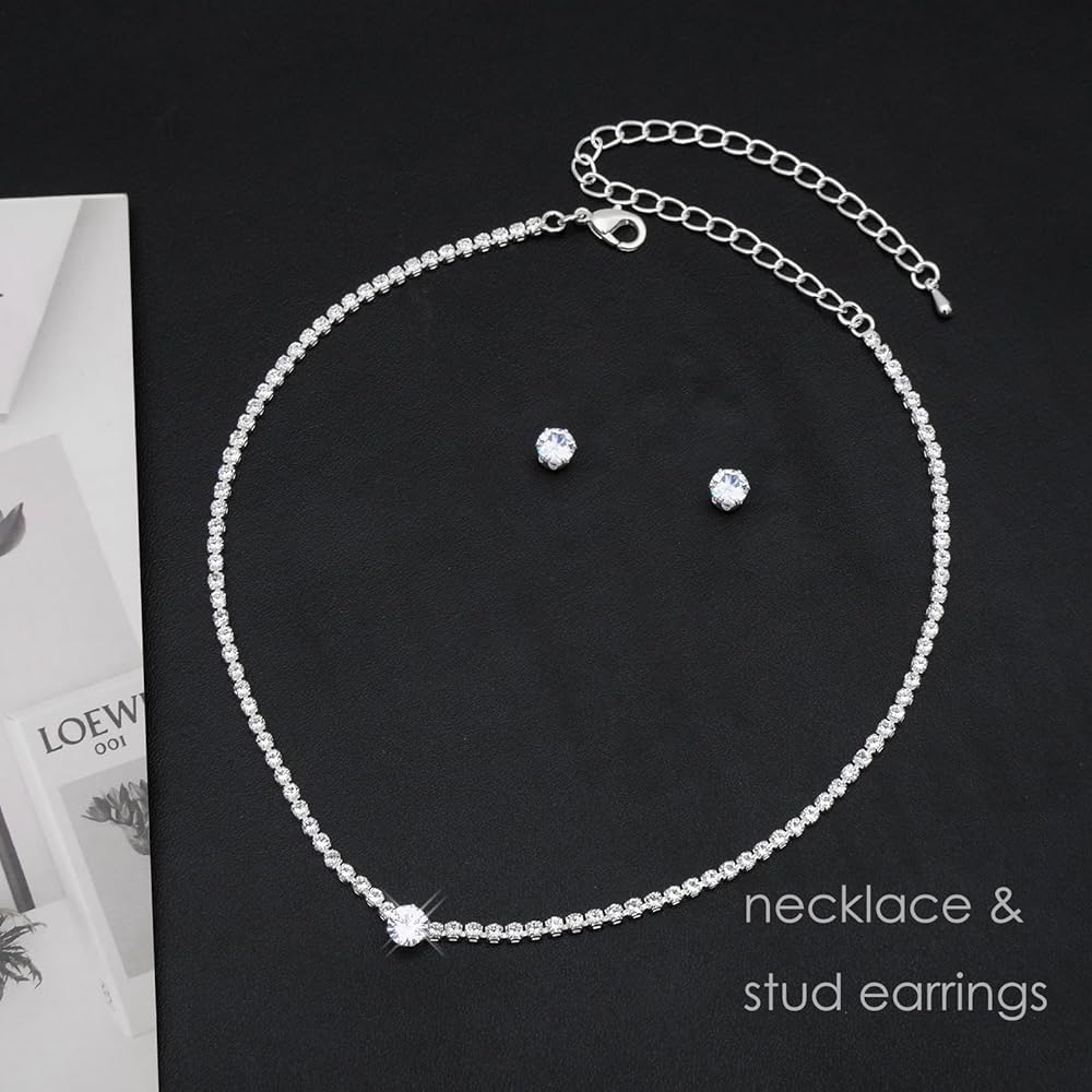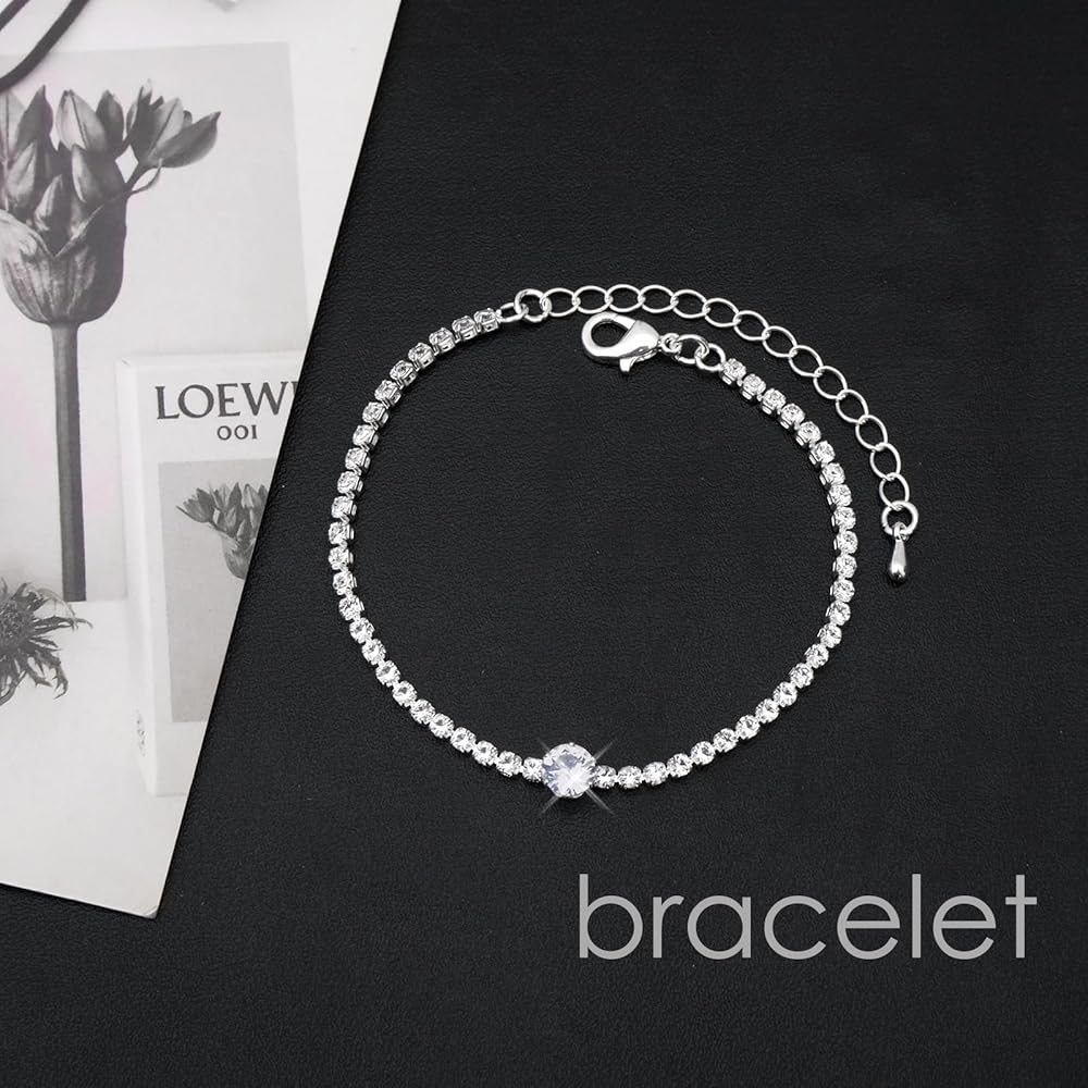 Material: Adorned with meticulously selected sparkling rhinestones, this jewelry set is crafted from eco-friendly brass with a silver plating that is both lead-free and nickel-free. It adheres to the rigorous Prop 65 standard, ensuring it won't tarnish or irritate your skin.