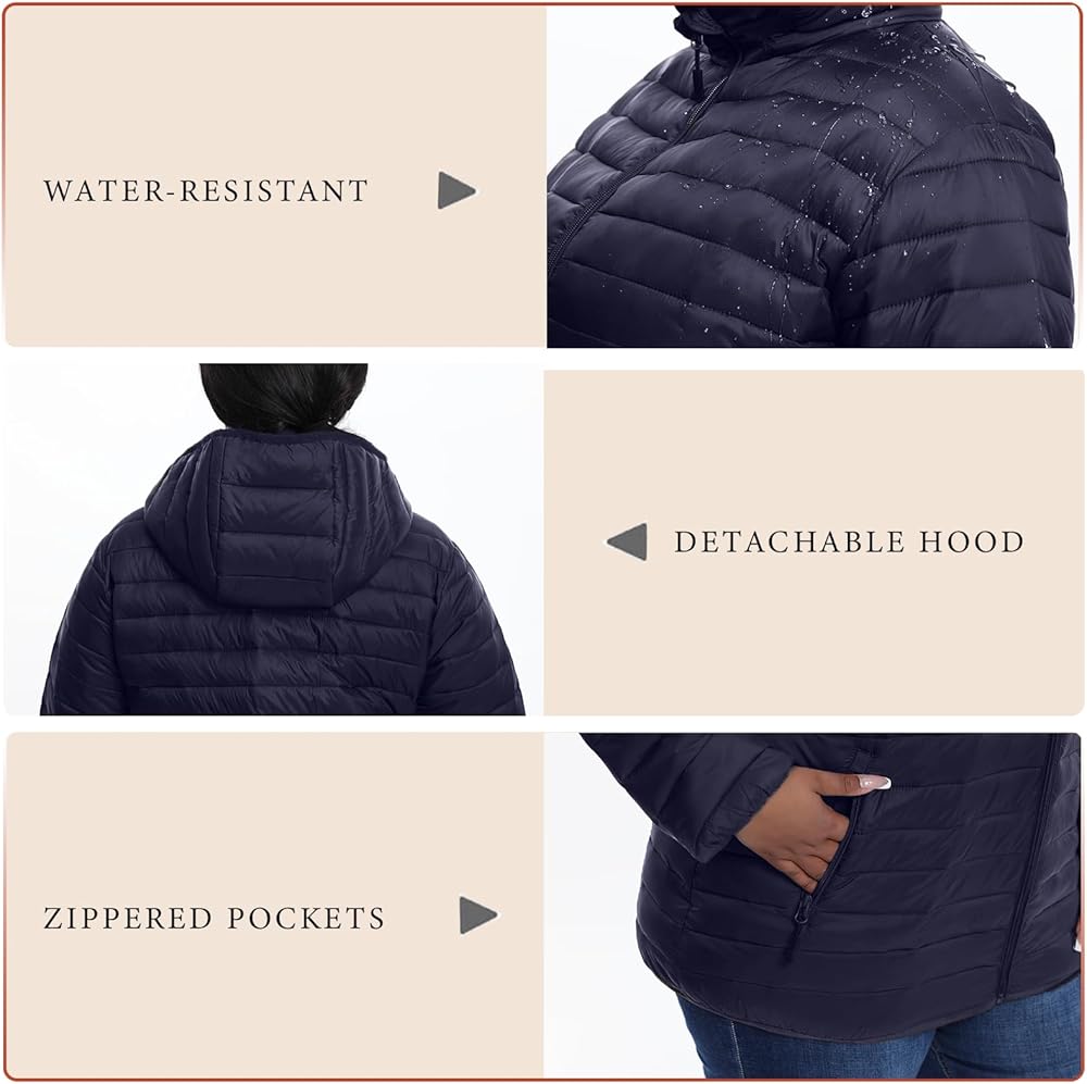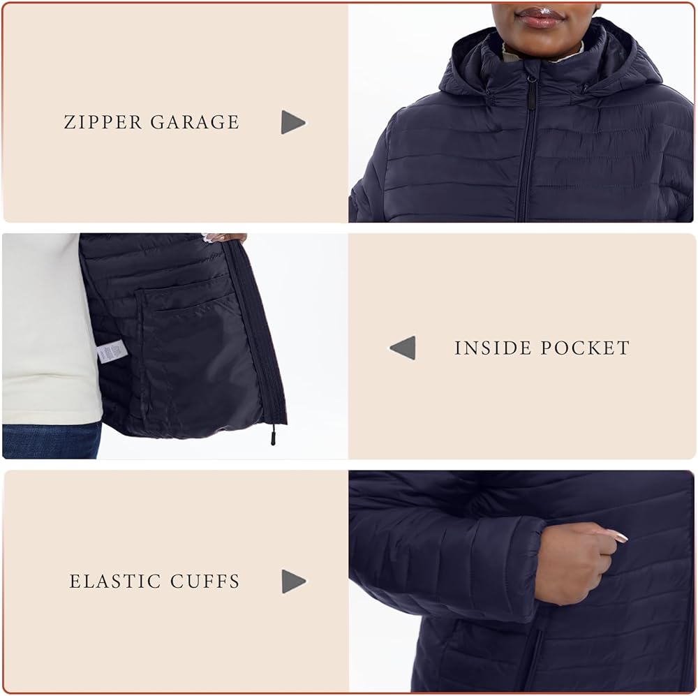 دافئ ومريح: السترات النسائية المنتفخة ذات الحجم الكبير مصنوعة من نسيج بولي أميد ناعم مقاوم للماء ومملوءة بمواد دافئة، مما يضمن بقاء جسمك جافًا ومريحًا حتى في المطر الخفيف والثلج.