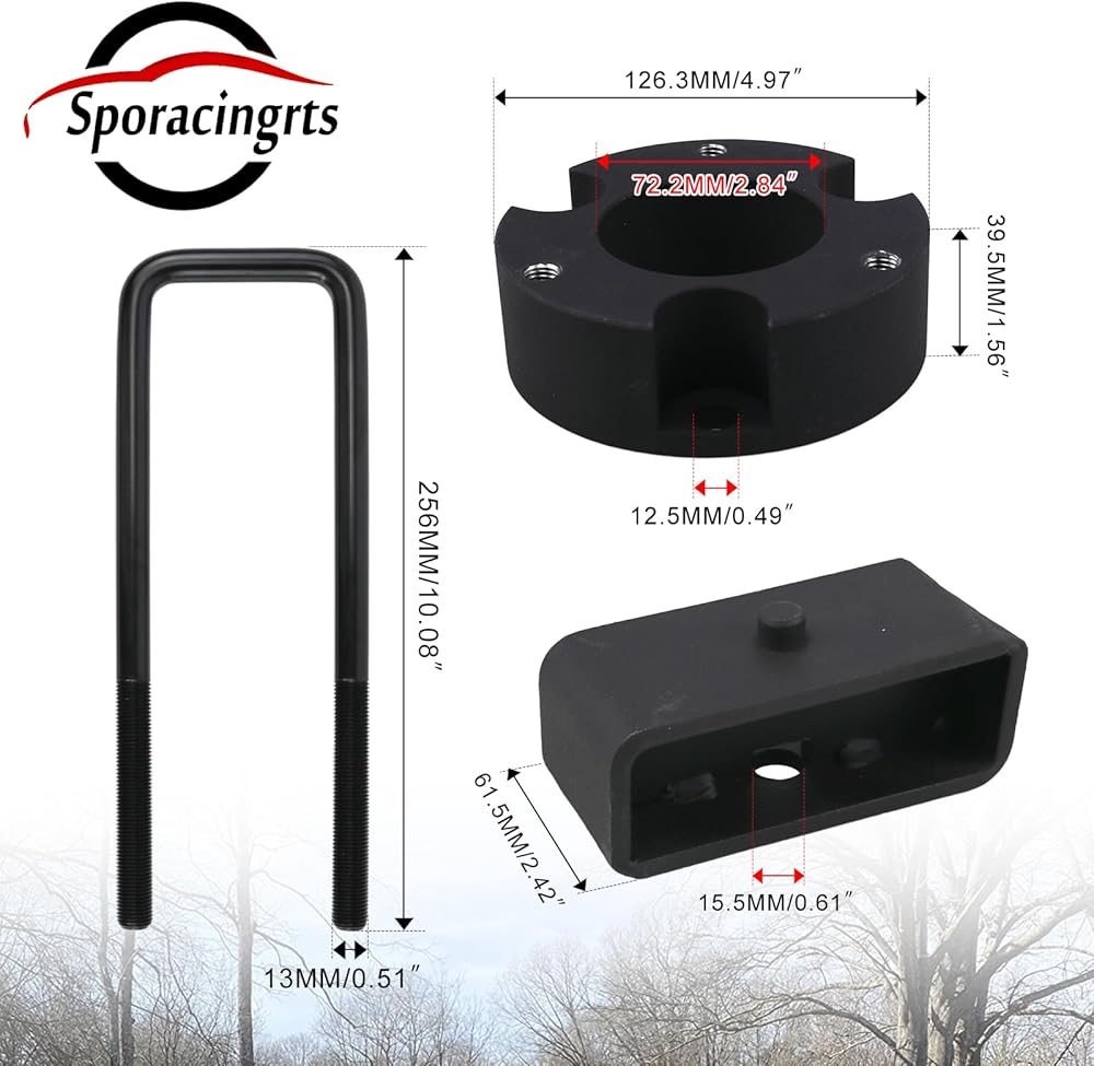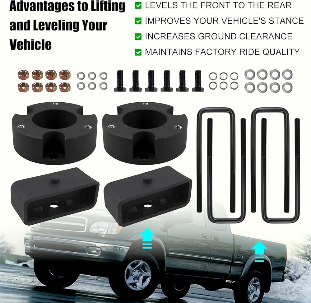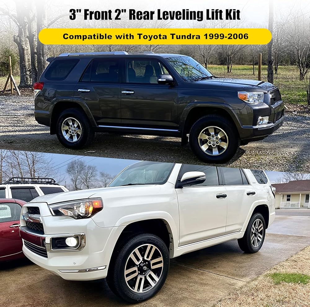 Sporacingrts 3 "أمامية 2" مجموعة رفع التسوية الخلفية متوافقة مع تويوتا تندرا 1999-2006 3 "طقم مستوى فاصل الدعامة الأمامية و 2" مجموعات رفع كتل الرفع الخلفية مع مسامير U