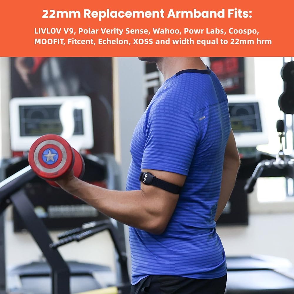 【متوافق مع مستشعر HRM】 سوار ذراع LIVLOV V11 لمراقبة معدل ضربات القلب، عرض الحزام الناعم 0.86 بوصة، متوافق مع معظم أجهزة مراقبة معدل ضربات القلب (ANT+، بلوتوث). متوافق مع LIVLOV V9، Polar Verity Sense، Wahoo، Powr Labs، Coospo، VorTec، SmartLAB، Echelon، Fitcent، XOSS مراقب معدل ضربات القلب.