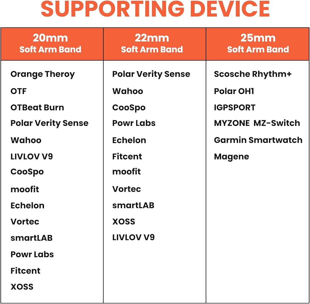 ملاحظة: سوار الذراع هذا غير متوافق مع Scosche Rhythm24 وRhythm+ 2.0 وOTF وOrange Theory وذراع مراقبة معدل ضربات القلب OBeat Burn وأجهزة الاستشعار الأخرى التي يقل عرضها عن 22 مم.
