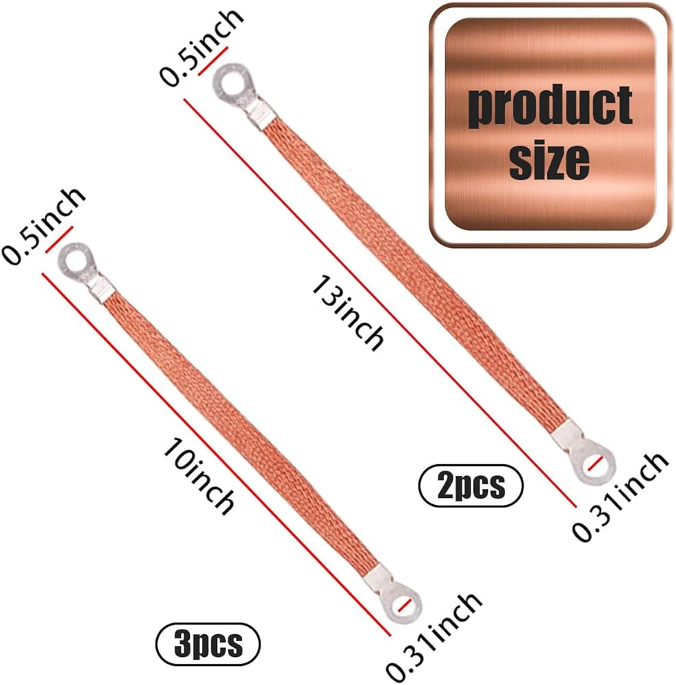 Packing List: The packaging includes 3 pcs 9.84", 2 pcs 12.9" to meet your different use needs and improve the operating efficiency and lifespan of the equipment. The engine grounding strap has terminals at both ends, which is easy to install, has firm wiring and is not easy to fall off.