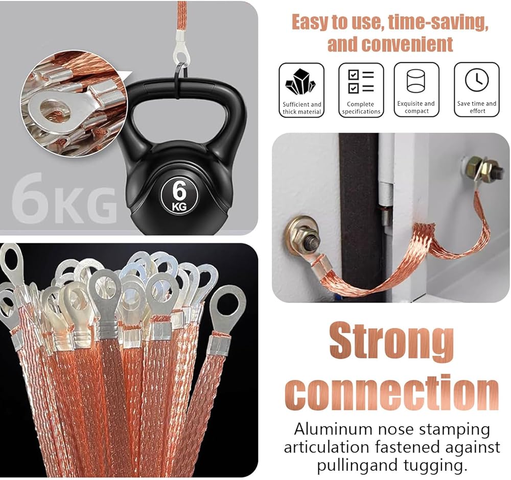 Copper Material: This grounding strap is made of copper material with excellent conductivity, which can ensure the efficiency and stability of current transmission. It is flexible and durable, has certain ductility, and can adapt to various complex cable routing and bending situations, improving its practicality nature and scope of application.