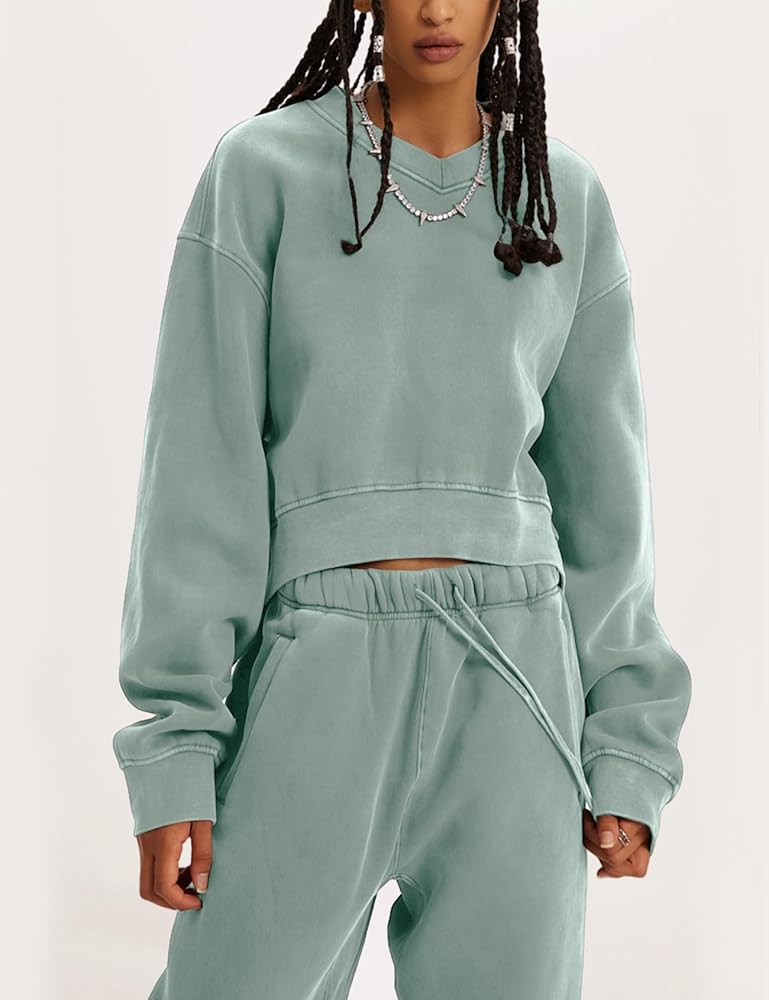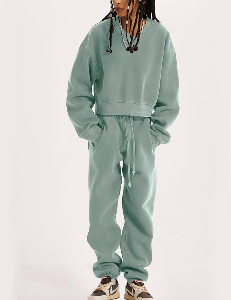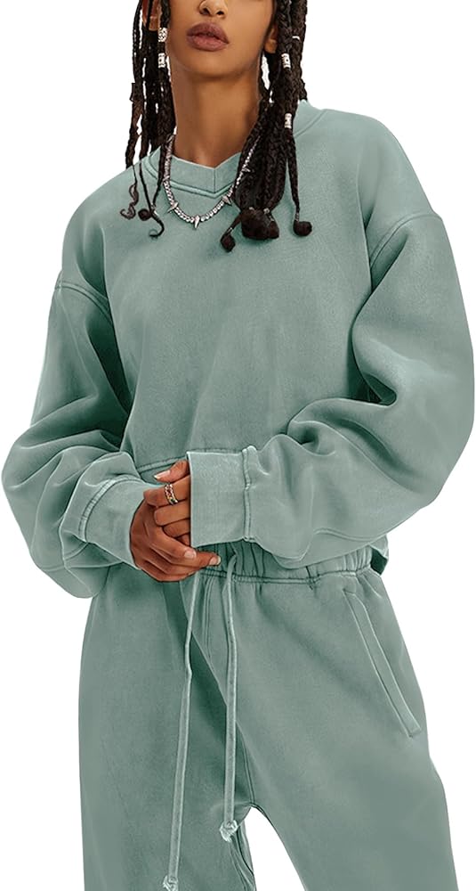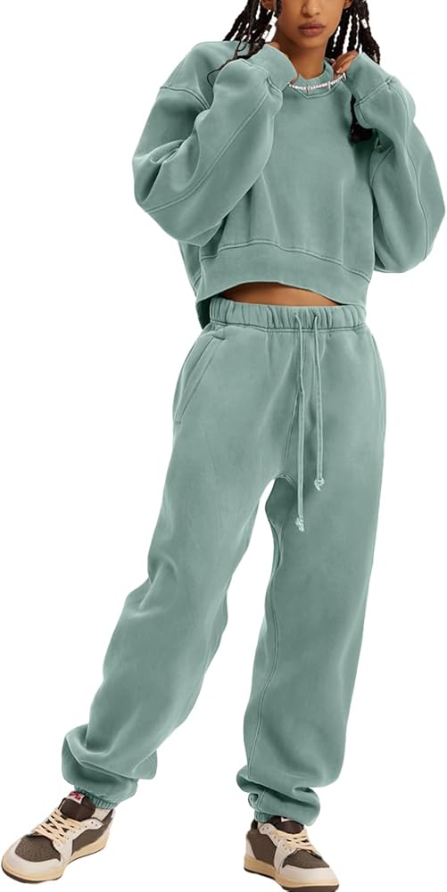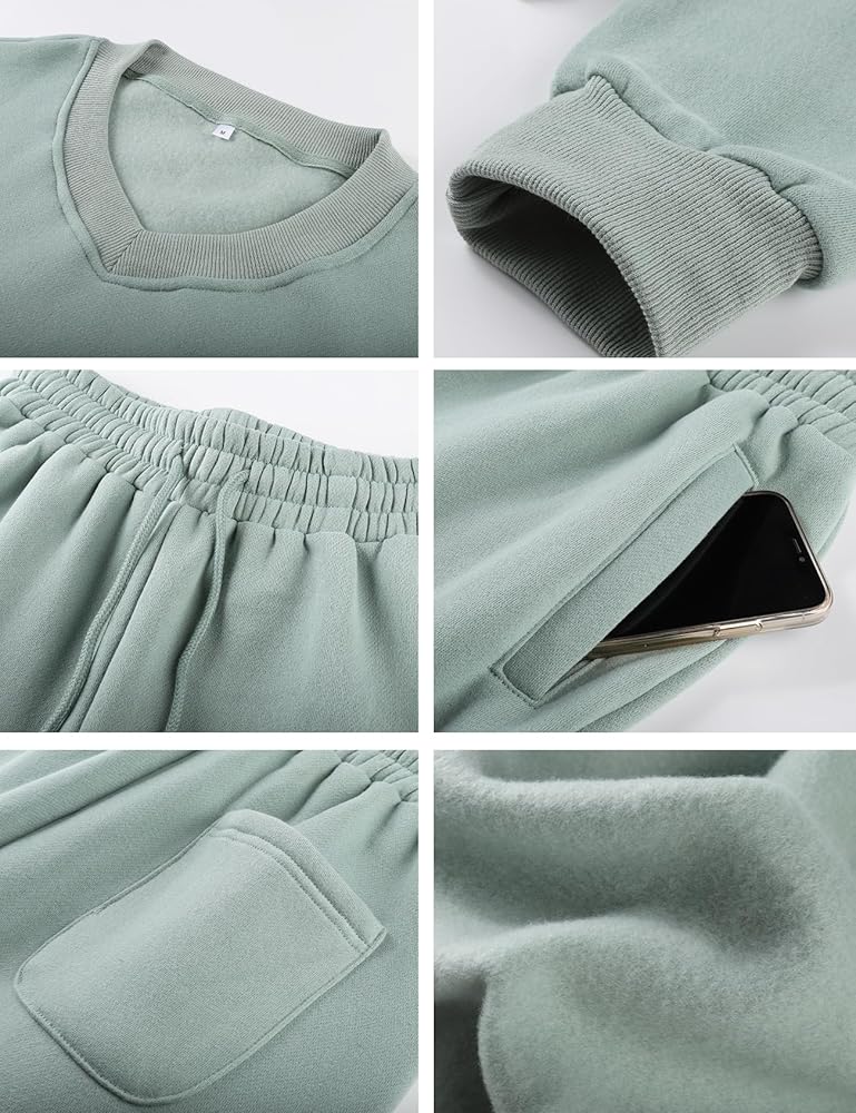 PEHMEA ملابس نسائية مكونة من قطعتين بلوفر بأكمام طويلة وسراويل ركض بدلة رياضية (BeanGreen-M)