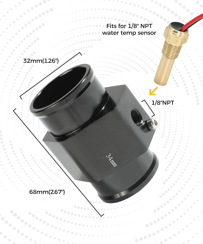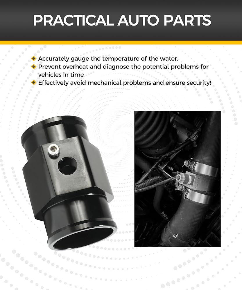 [Function] Temperature sensor adapter used to install the water temperature sensor directly into the coolant line of the radiator. Accurately measure the water temperature, prevent overheating, timely diagnose potential vehicle problems, effectively avoid mechanical failures, and ensure safety.