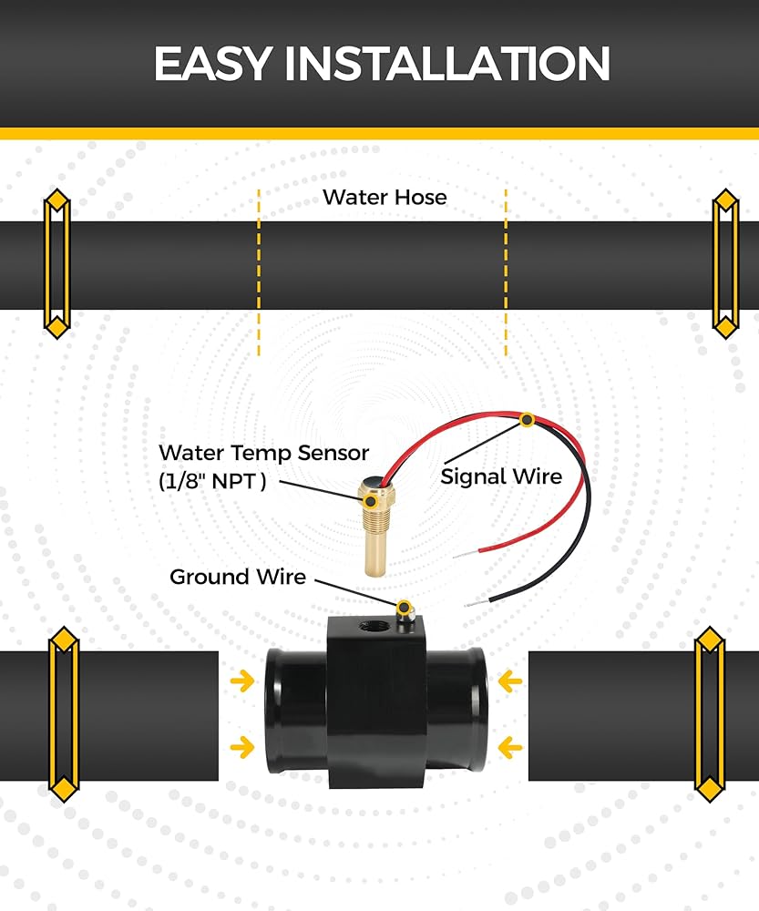 [Easy to Install] Water temp joint pipe is equipped with 2 durable adjustable clamps to fix; easy to install, but professional installation is highly recommended! Please check and confirm the size before purchase! Installation instructions are not included!