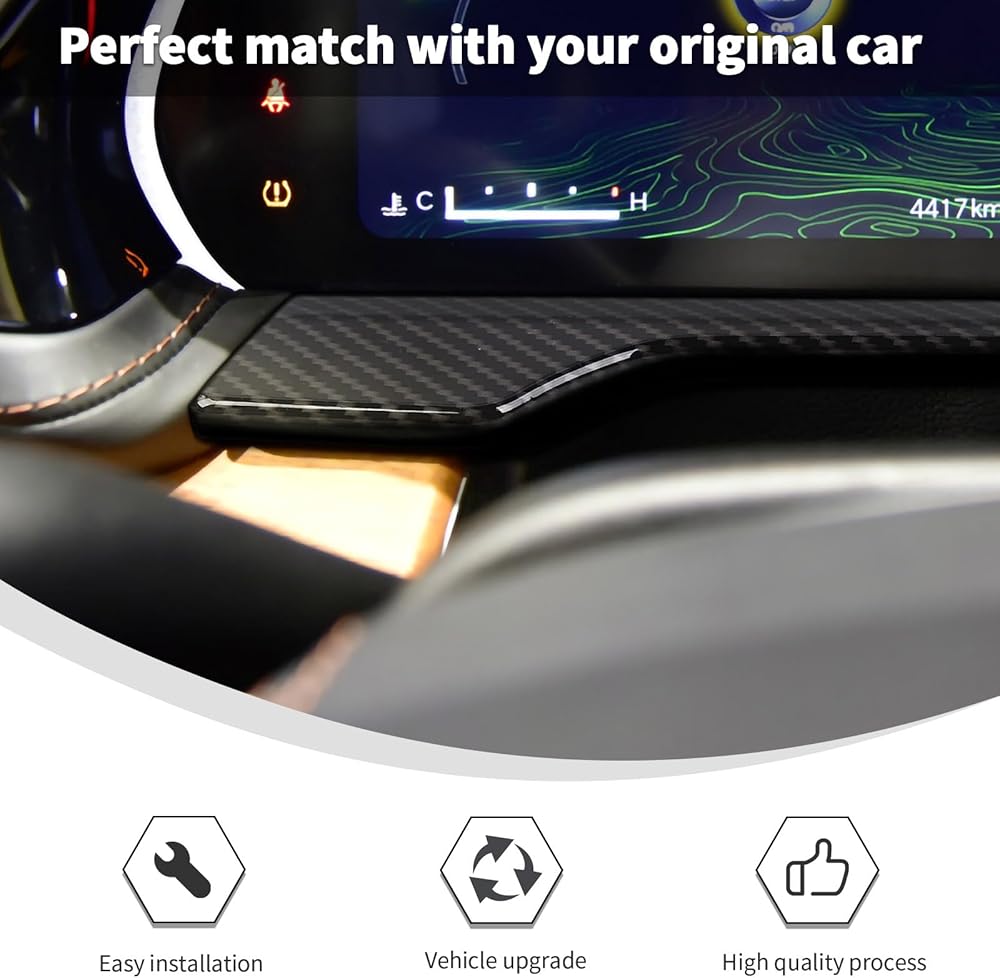 Linskip لوحة القيادة من ألياف الكربون متوافقة مع 2021-2024 Jeep Grand Cherokee L & 2022-2024 Grand Cherokee، غطاء إطاري لأداة Dash لملحقات Jeep Grand Cherokee الداخلية