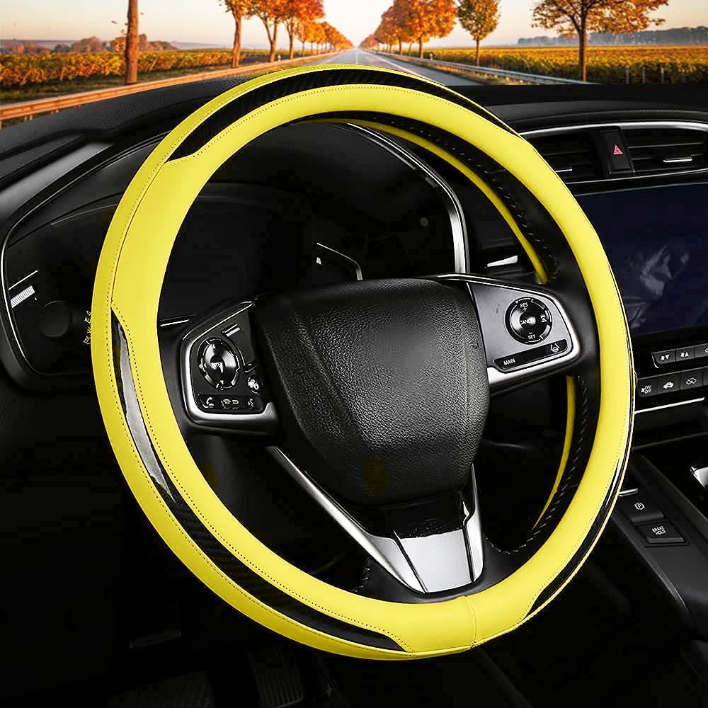 Elevate your driving experience with this stylish and functional steering wheel cover. Crafted with premium materials, it offers a soft and comfortable grip, enhancing your control and confidence behind the wheel. The sleek design seamlessly complements your vehicle's interior, adding a touch of elegance and personality. Easily installed, this cover provides a secure fit, ensuring a lasting and slip-resistant hold. Embrace the joy of driving with this practical and visually appealing accessory that combines style and functionality.