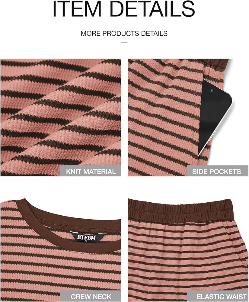 المميزات: مجموعات صالة متماسكة مخططة / رقبة دائرية / شورت رياضي بخصر مطاطي / مجموعات متطابقة بأكمام قصيرة / مجموعات قمصان وسراويل قصيرة / طباعة مخططة / مقاس فضفاض / ملابس ناعمة متماسكة