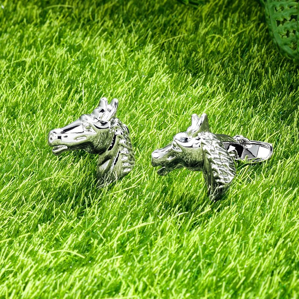 【3D Horse Head Design】These 3D stereoscopic pieces of men's jewelry are perfect for animal and sports lovers alike.The bright and shiny finish adds a polished look, making these cufflinks the perfect accessory for any occasion. Elevate your style and showcase your unique personality with these HAWSON cufflinks.【Easy To Use】A Simple T-shaped structure design allows you to take off or put cufflinks on in 20 seconds without the help of others through your shirt button holes and stay in the correct position.Save time and have fun! 【High Quality】Each pair of men's cufflinks is carefully crafted to restore authentic details and colors. The high quality material then ensures durability and long-lasting luster. A reliable choice for gentlemen who love exquisite accessories. Its unique design is sure to show off your individual style. 【Creative Gift】 The cufflinks are packaged in a beautiful black specialized cufflinks box , suitable for husband, boyfriend or friends. Whether it's a birthday, anniversary or party, these cufflinks will make a lasting impression.【Usage Advice and After-Sales Service】 Please keep the cufflinks dry, wipe with the professional cleaning cloth provided by HAWSON and remember put in your storage box after wearing. HAWSON provides full refund or replacement service, we will reply within 24 hours and provide a satisfactory solution.